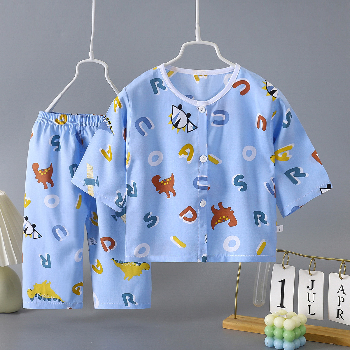 2026 아동용 면 실크 잠옷 세트 여름용 아기 얇은 가디건 홈웨어 면 실크 에어컨 의류 원피스 배송스토어 가기