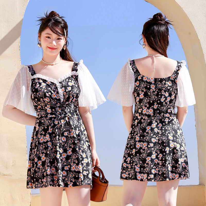 플러스 사이즈 수영복 여성 폭발성 원피스 스커트 느슨한 고기 커버 슬림 보수 단색 온천 통통녀 수영복 도매