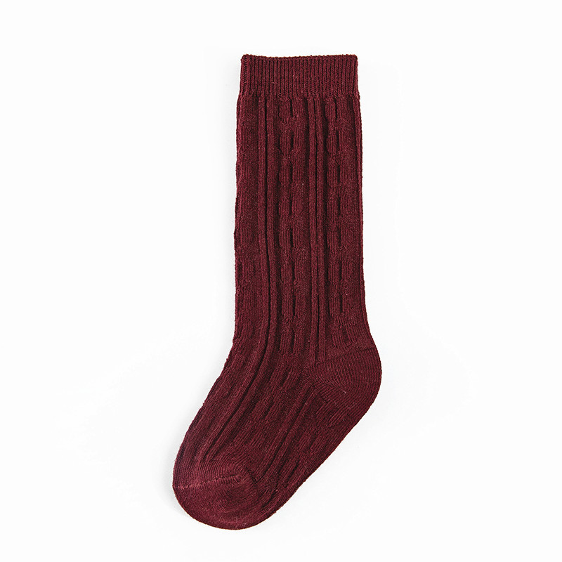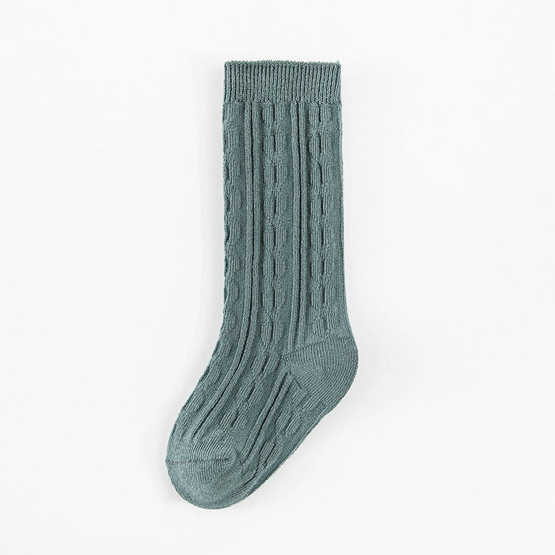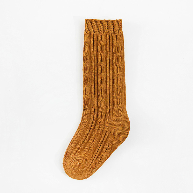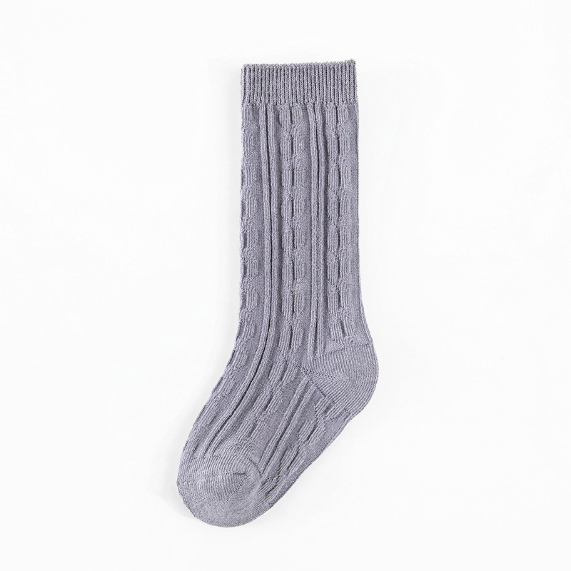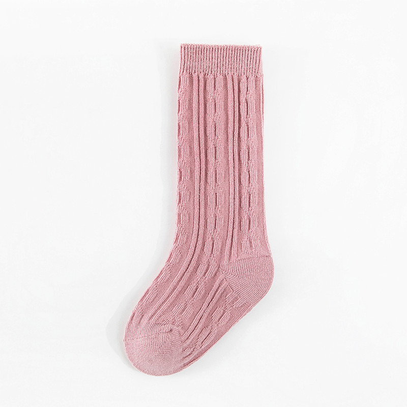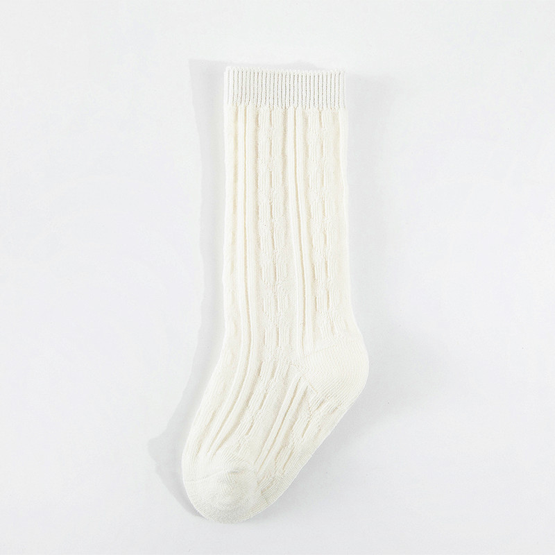 봄과 여름 새 아기 양말 빗질면 긴 튜브 아기 무릎 양말 크로스 보더 단색 이중 바늘 0-5 세 어린이 양말