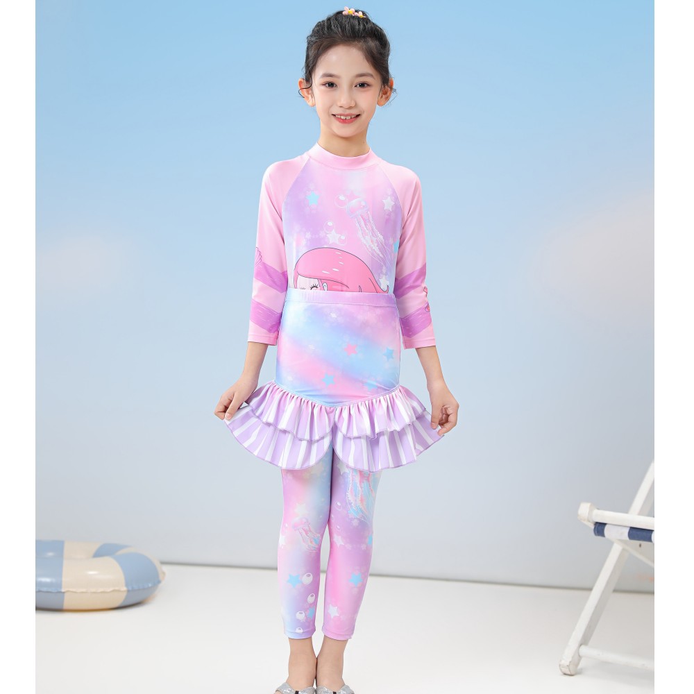 어린이 수영복 여성 원피스 수영복 서핑 정장 소녀 긴 소매 바지 새로운 두 조각 세트 소녀 수영복