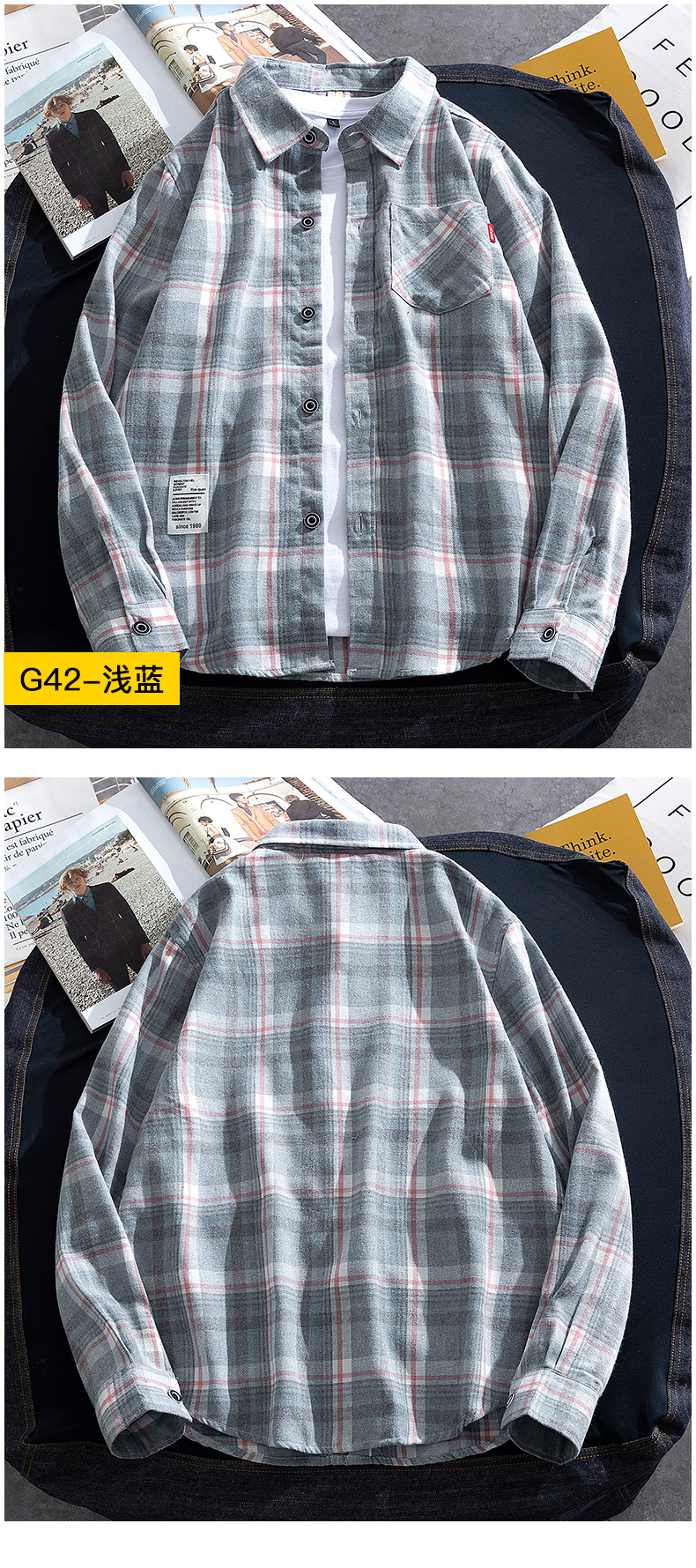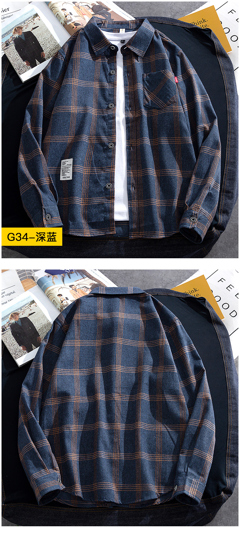 가을, 겨울 캐주얼 셔츠 남성 격자 무늬 셔츠 한국 스타일 유행 잘 생긴 재킷 남성 긴팔 내부 따뜻한 셔츠스토어 가기
