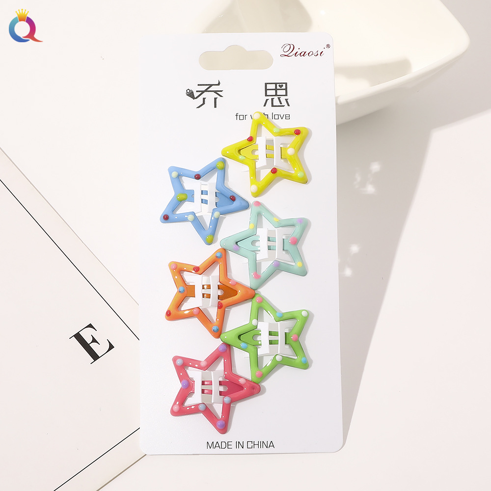 • 오각별 머리핀 세트 드롭 오일 마카롱 6 색