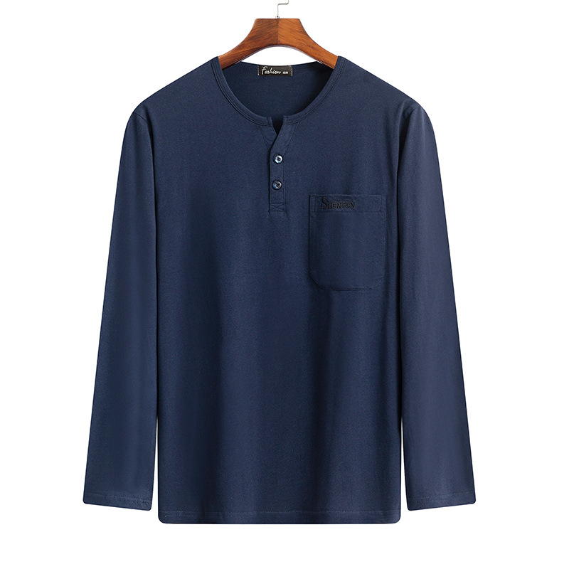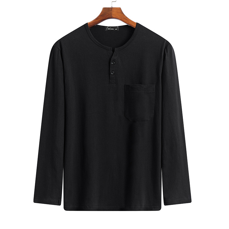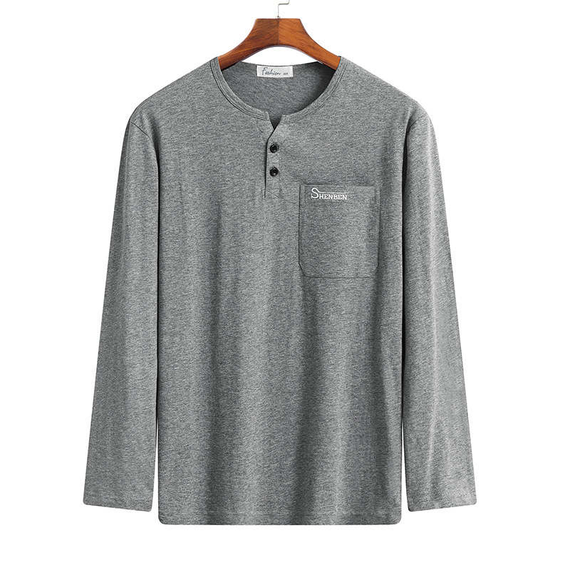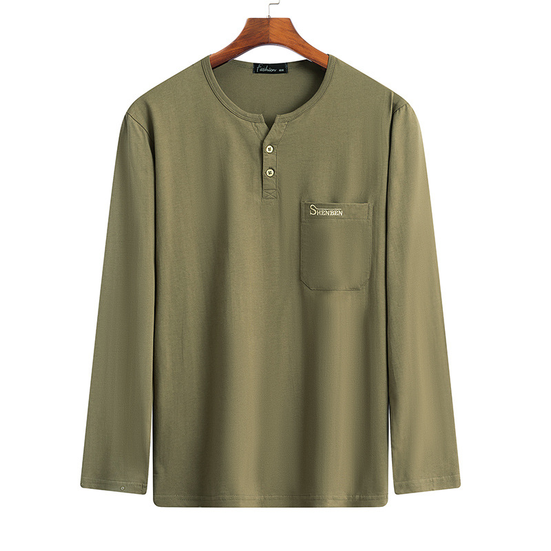 아빠의 순면 티셔츠 남성용 긴팔 중년 남성용 얇은베이스 셔츠 가을 의류 중년 및 노인 느슨한 티셔츠 탑