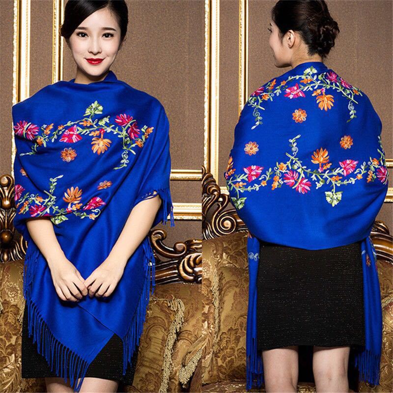 가을과 겨울 새로운 자수 에스닉 스타일 캐시미어 스카프 여성용 두꺼운 따뜻한 색 술 스카프 자수 숄스토어 가기
