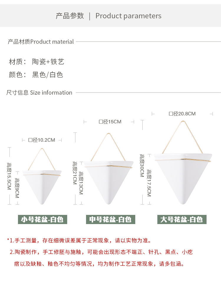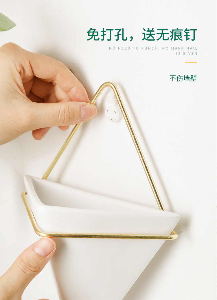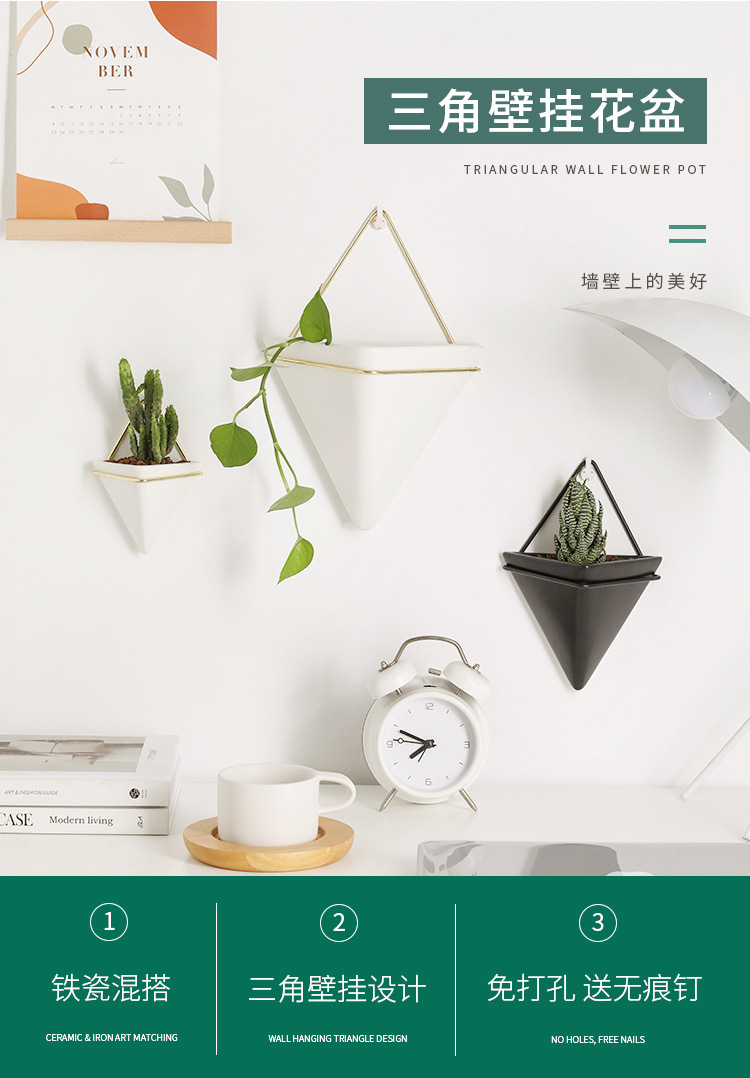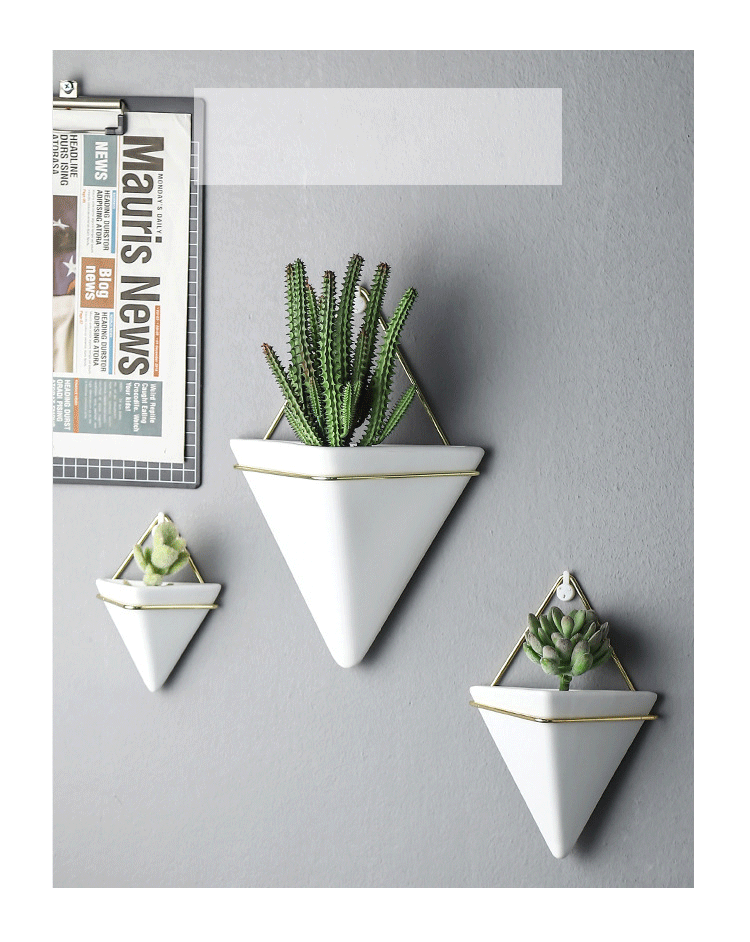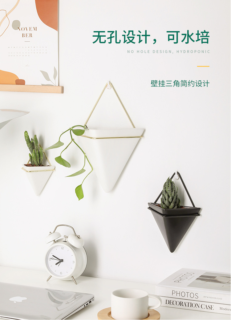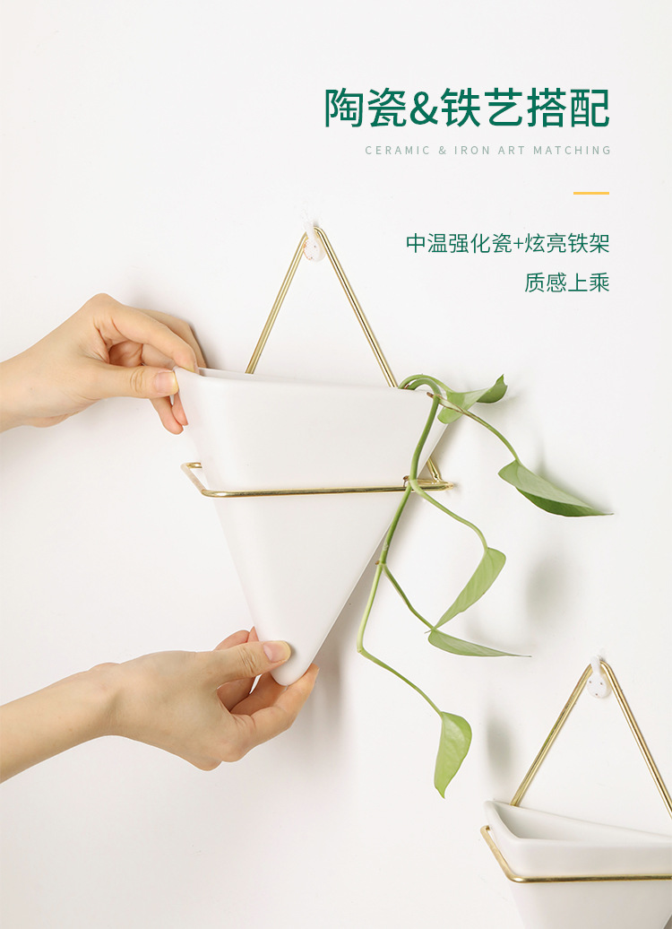 크로스보더 벽걸이 화병 창의적인 디자인 철제 화분 세라믹 용기 벽걸이 삼각형형 걸이식 화분 도매스토어 가기
