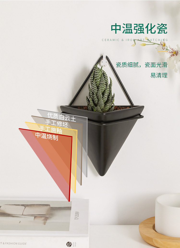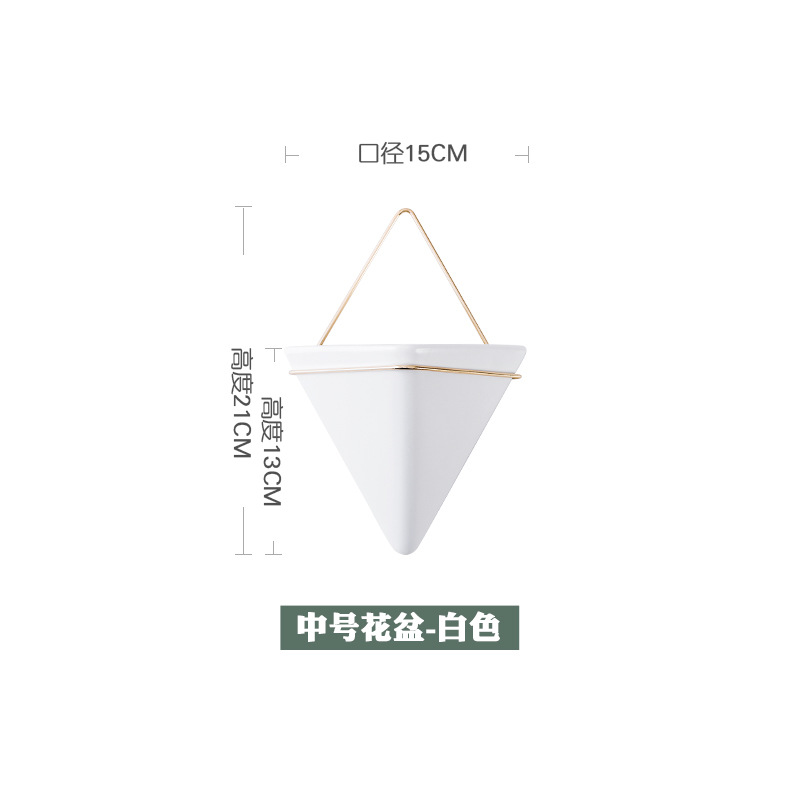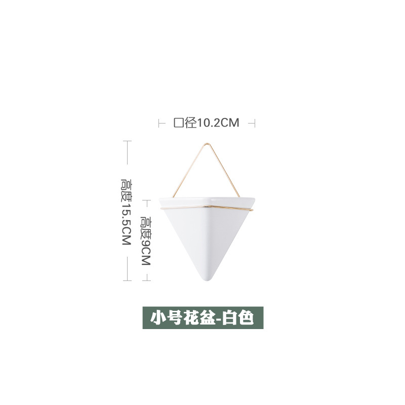 크로스보더 벽걸이 화병 창의적인 디자인 철제 화분 세라믹 용기 벽걸이 삼각형형 걸이식 화분 도매