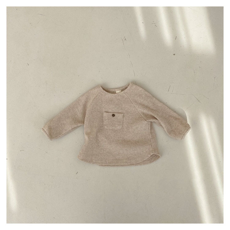 아동복의 한국어 버전 봄과 가을 새로운 소년과 소녀 아기 캐주얼 작은 포켓 티셔츠 어린이 기본 셔츠스토어 가기