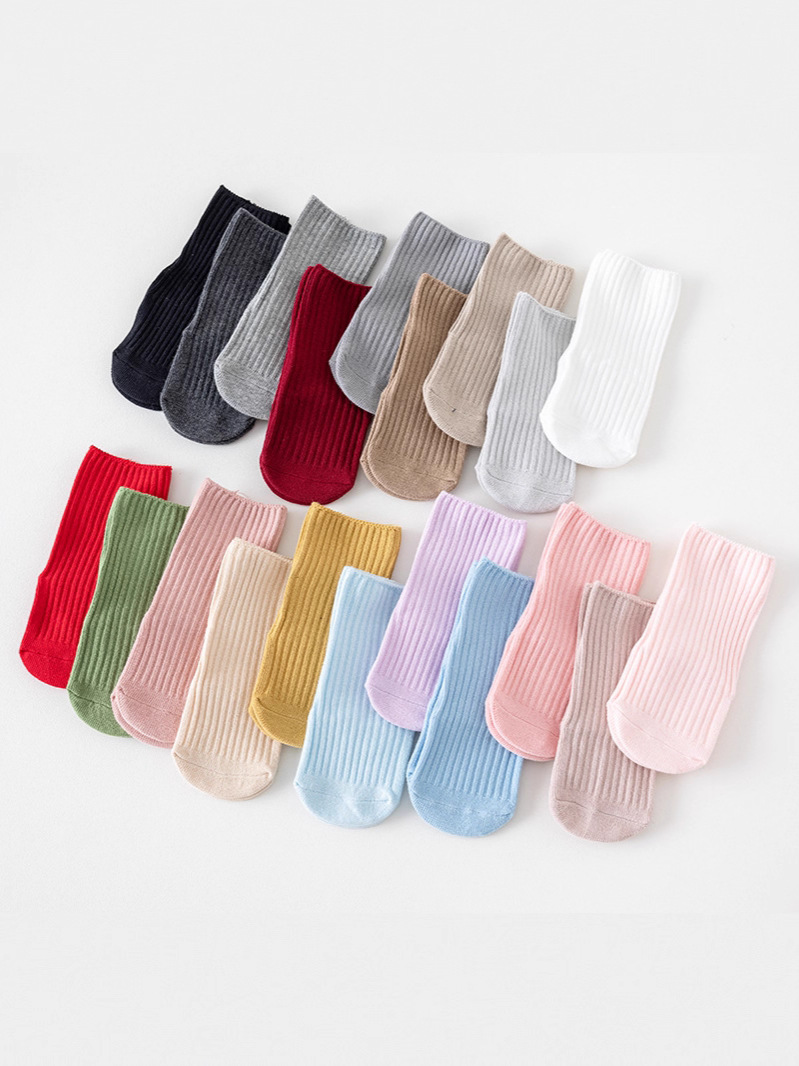 봄, 가을, 겨울 유아용 스트레이트 양말, 미끄럼 방지 바닥 양말, 유아용 종아리 중간 양말, 이중 바늘 핏 스트립 유아용 양말스토어 가기