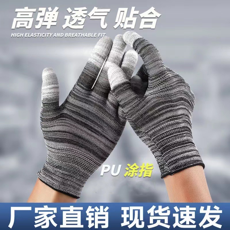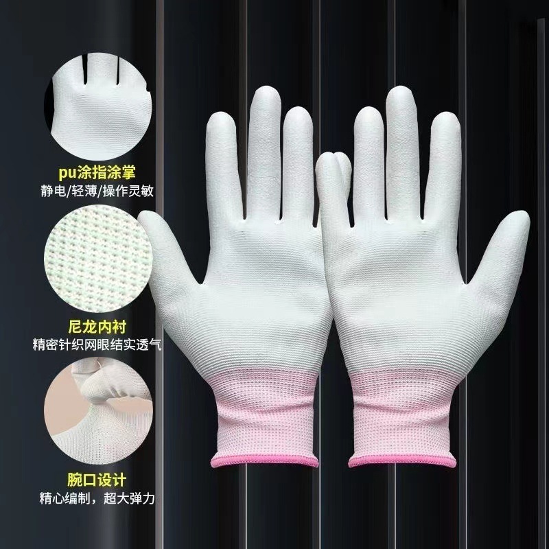 공장 여름 얇은 장갑 PU 코팅 손바닥 장갑 노동 보험 따기 전자 통기성 흰색 장갑 나일론 장갑 도매스토어 가기