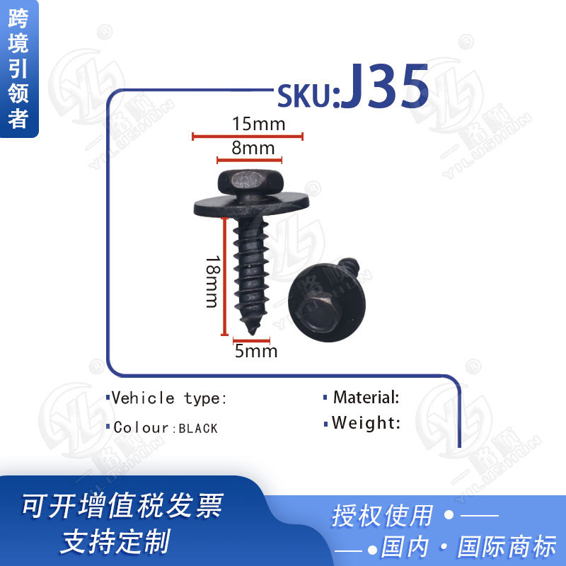도매 공급 자동차 육각형 헤드 셀프 태핑 스크류 자동차 수정 수리 액세서리 플라스틱 클립 버클 J35