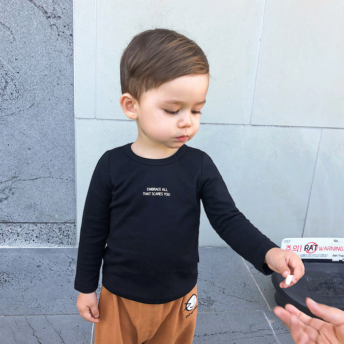소년 가을 면화 긴팔 티셔츠 2025 새로운 어린이 바닥 셔츠 다목적 문자 T 봄, 가을 내부 탑 유행스토어 가기
