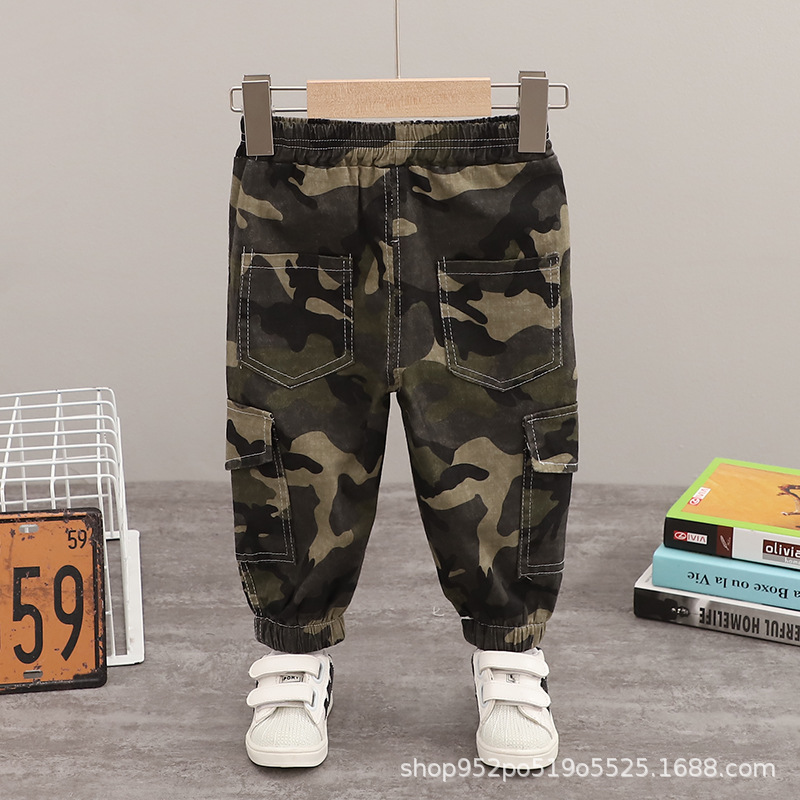 아동복 남아 캐주얼 바지 봄 가을 캐주얼 위장 신상품 봄 가을 의류 트렌디한 중소형 아동용 작업복스토어 가기