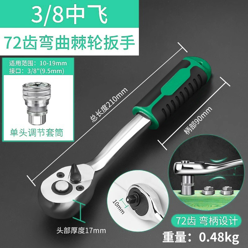 • 3/8 곡선 핸들 래칫 렌치-72 이빨 비행
