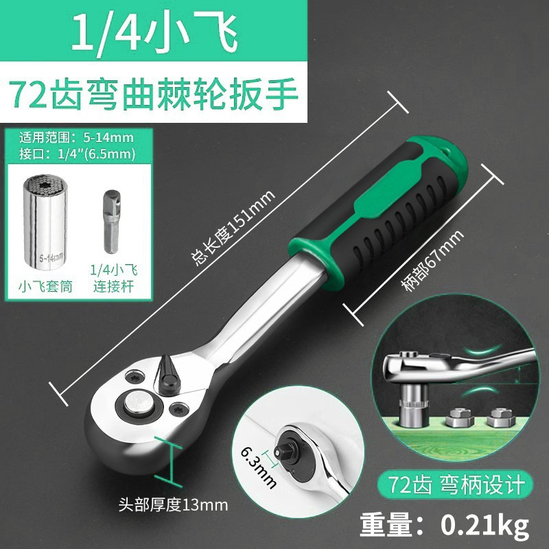 • 1/4 곡선 핸들 래칫 렌치 + 범용 소켓 (5-14mm)