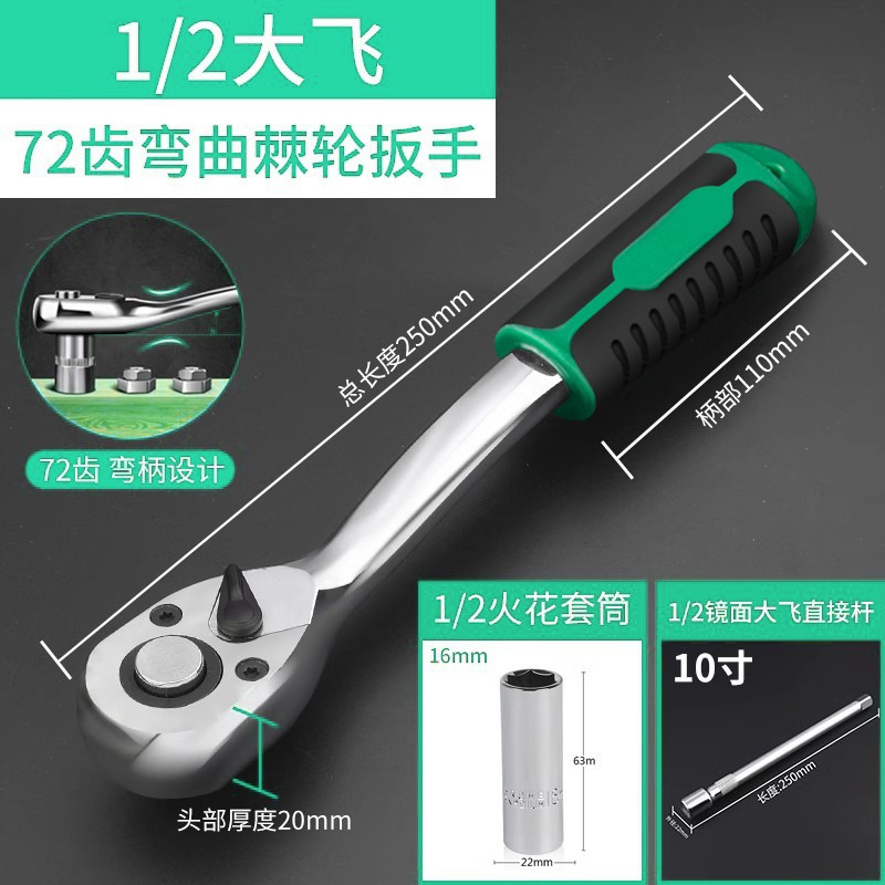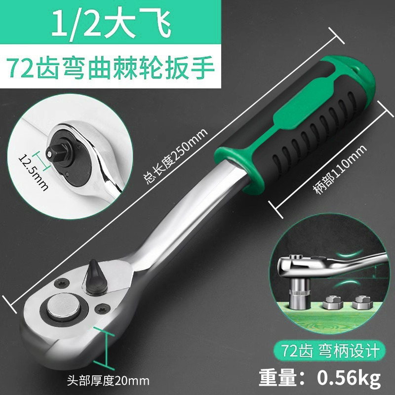 • 1/2 곡선 핸들 래칫 렌치-72 이빨 비행