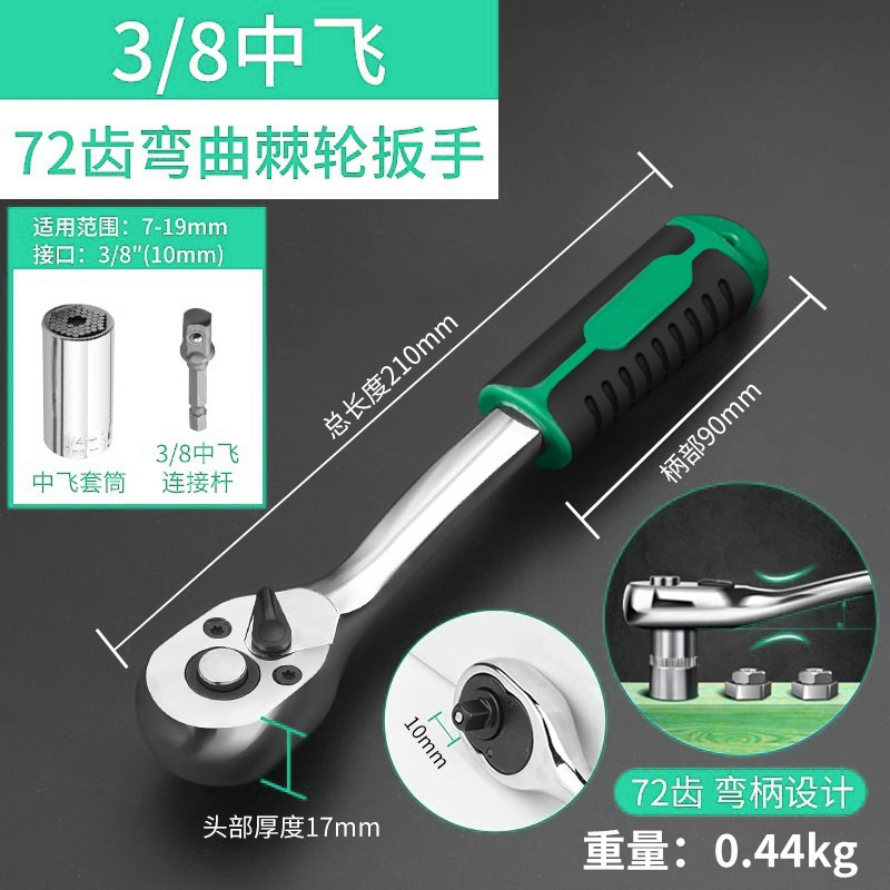 • 3/8 곡선 핸들 래칫 렌치 + 범용 소켓 (7-19mm)