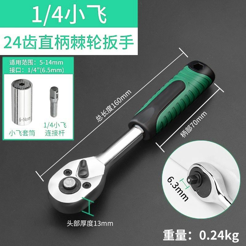 • 1/4 직선 핸들 래칫 렌치 + 범용 소켓 (5-14mm)