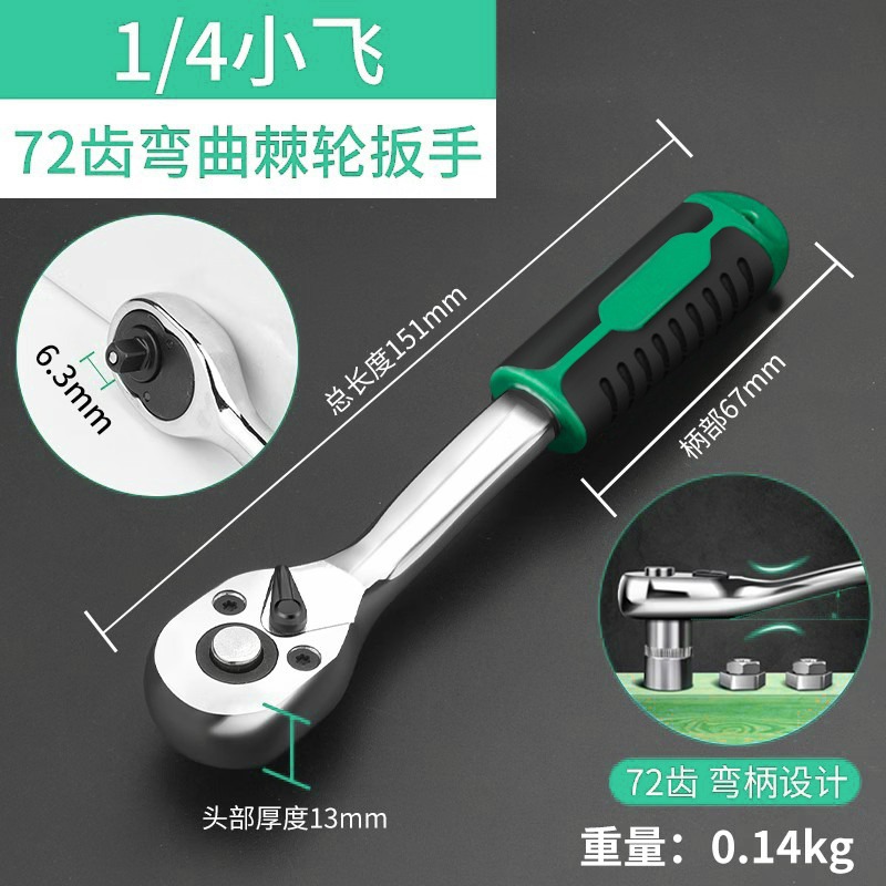 • 1/4 곡선 핸들 래칫 렌치-72 이빨 작은 파리