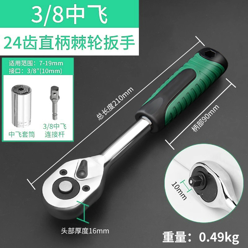 • 3/8 스트레이트 핸들 래칫 렌치 + 범용 소켓 (7-19mm)