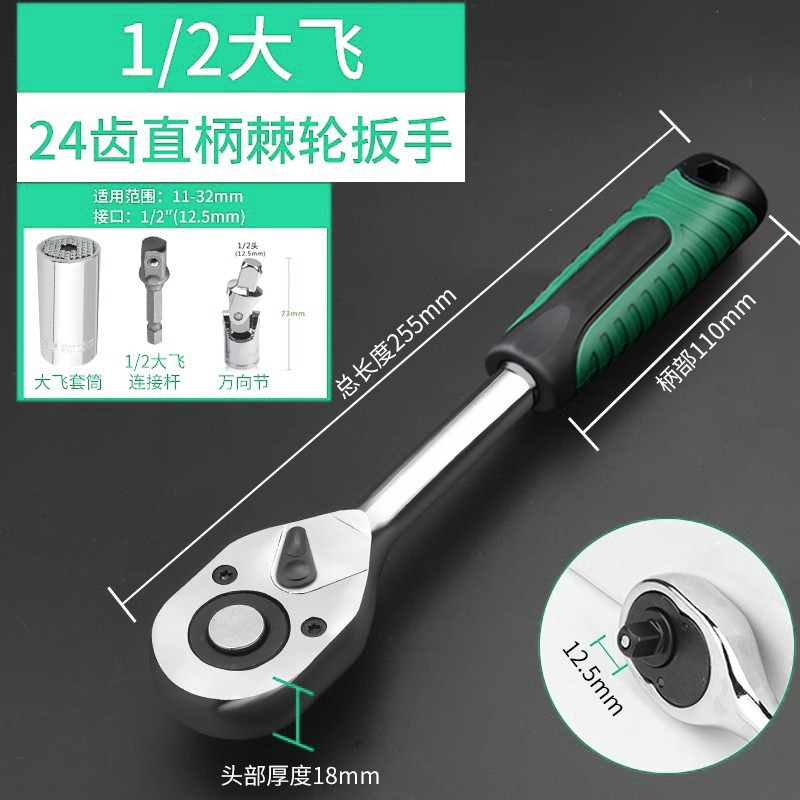 • 1/2 직선 핸들 래칫 렌치 + 범용 소켓 (11-32mm)