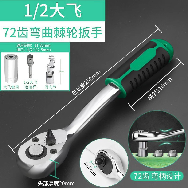 퀵 소켓 래칫 렌치 대형, 중형 및 소형 비행 양방향 범용 자동 수리 공구 렌치 공업용 등급 72 이 가정용스토어 가기