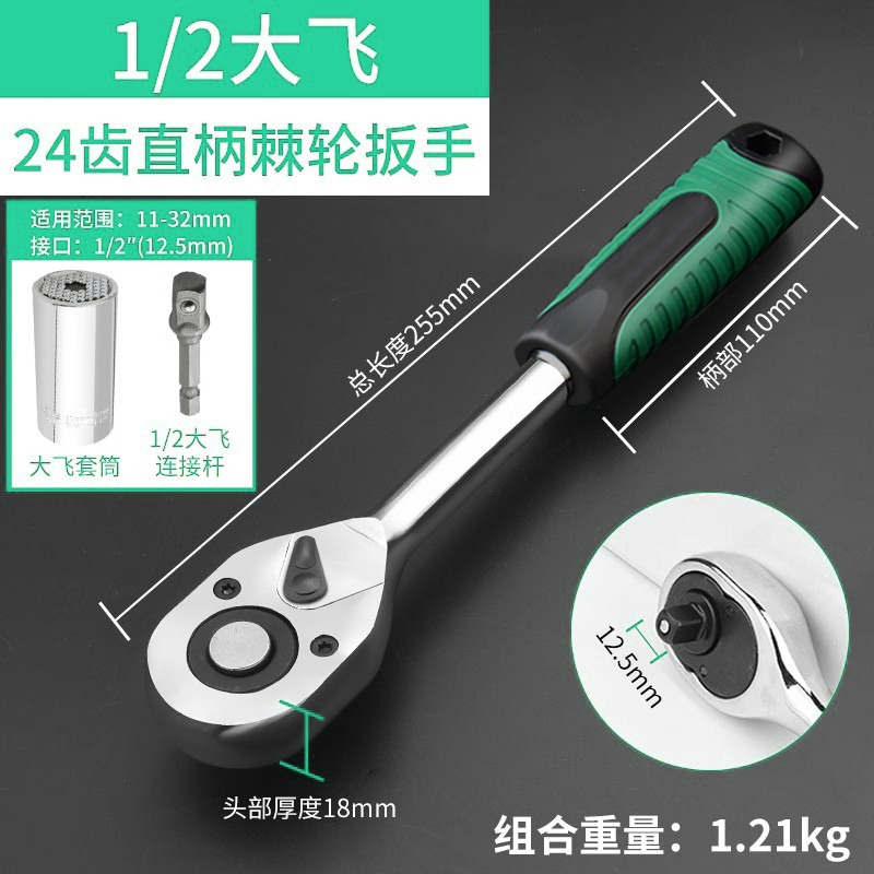 • 1/2 직선 핸들 래칫 렌치 + 범용 조인트 + 범용 슬리브 (11-32mm)