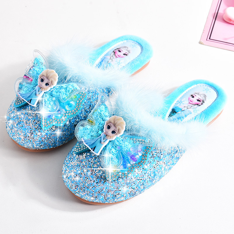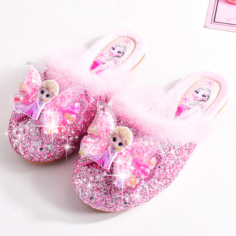 여아 봉제 슬리퍼 냉동 공주 아이샤 따뜻한 면화 신발 세련된 실내 홈 어린이 슬리퍼