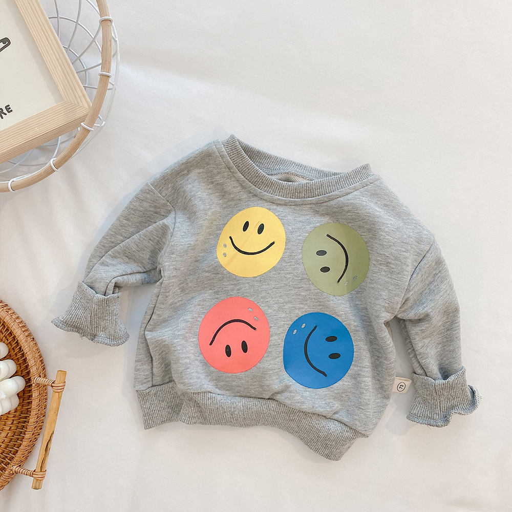 아기 스마일리 스웨터 2025 새로운 봄 소년 한국식 만화베이스 셔츠 걸스 스타일라인 줄무늬 트렌디 바지스토어 가기