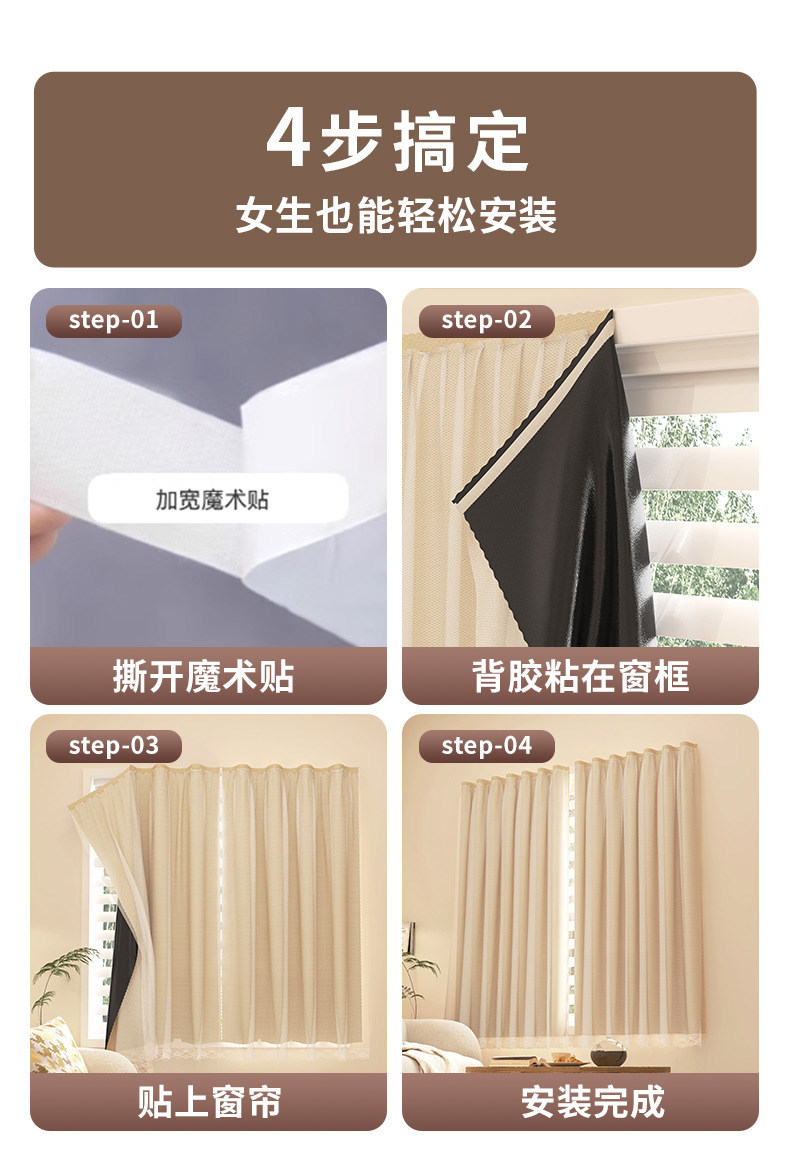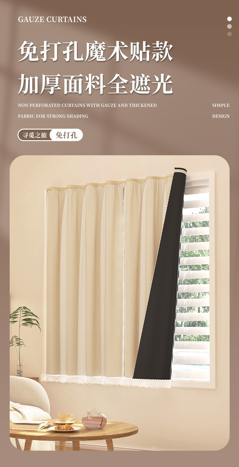 구멍을 뚫지 않고 붙일 수 있는 거즈 이중 레이어 높은 차광 커튼, 심플한 단색 차양 천, 북유럽 스타일 침실, 무료 배송