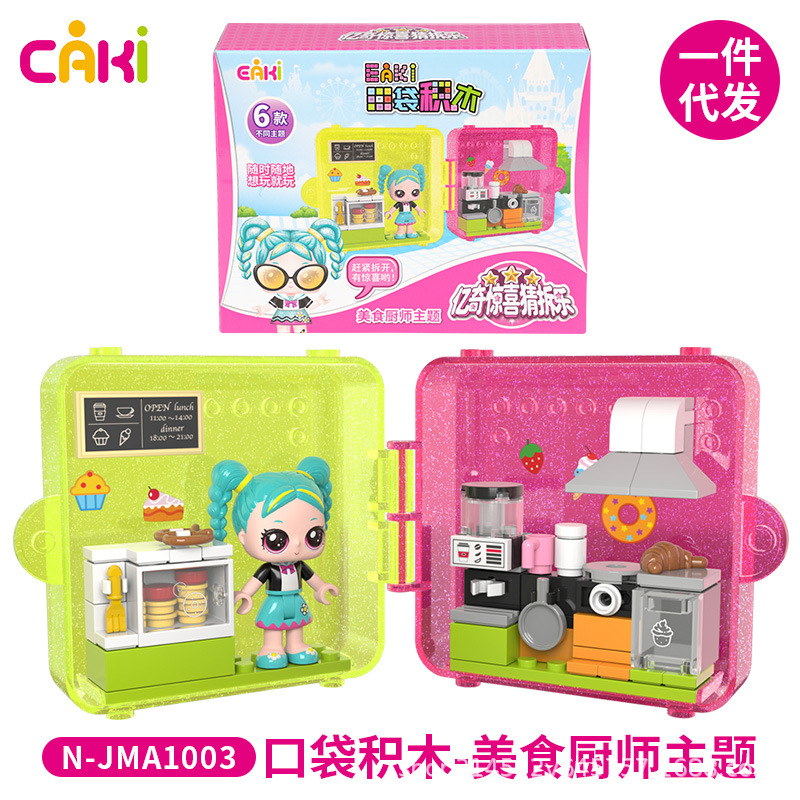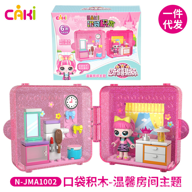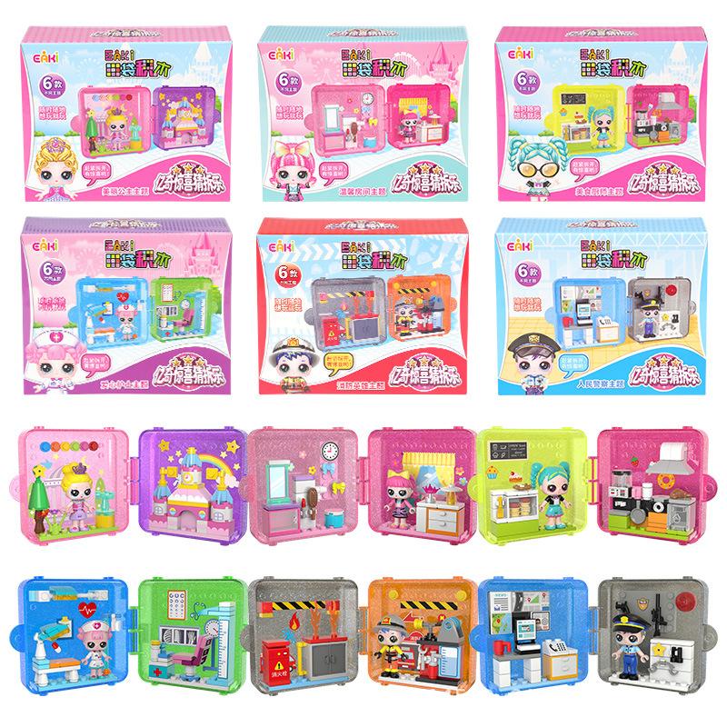 Yiqi 서프라이즈 추측 음악 미니 포켓 빌딩 블록 해체 장면 유치원 소년 소녀 공주 인형 장난감스토어 가기