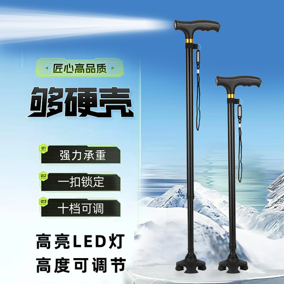 LED带灯四脚老人拐杖手杖老年人扙拐抏轻便多功能防滑拐棍杖批发