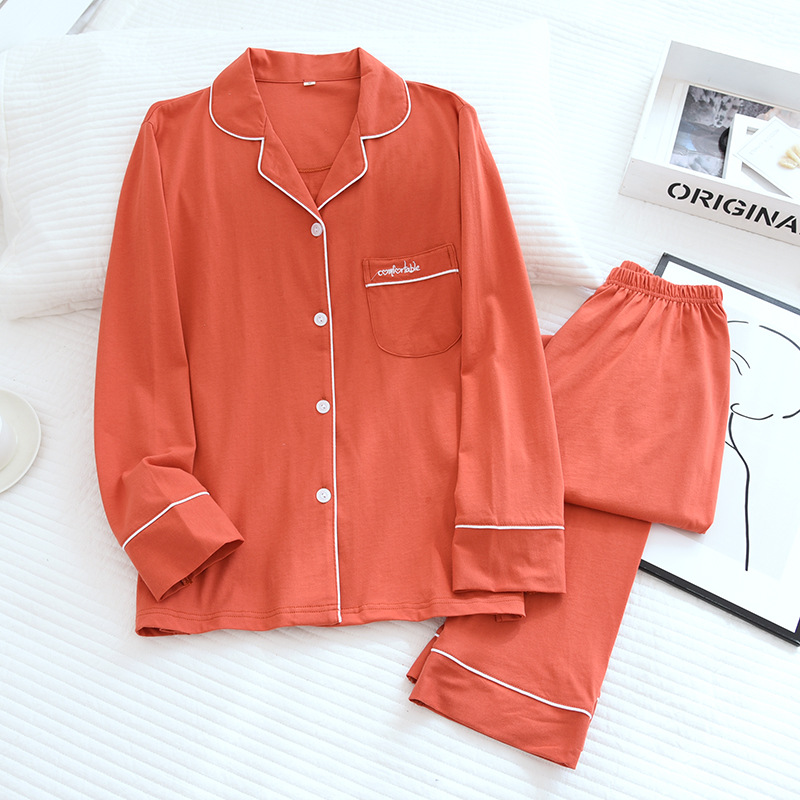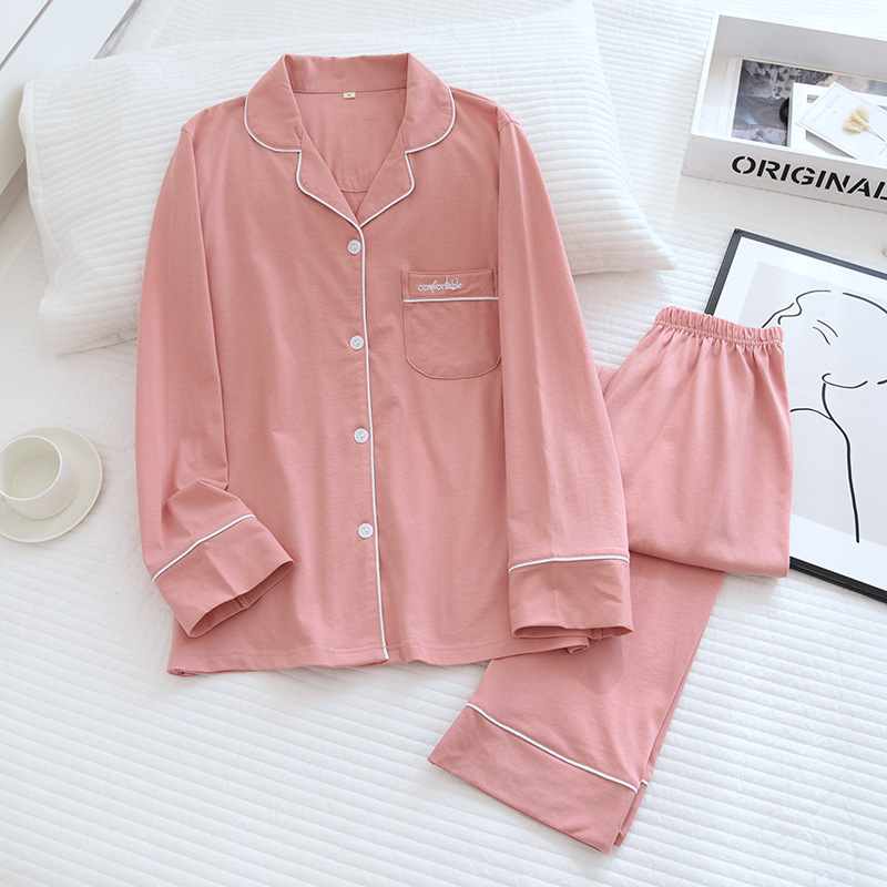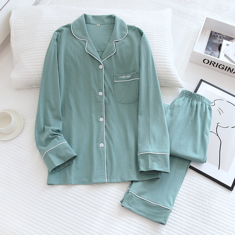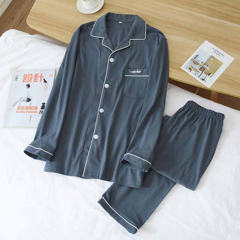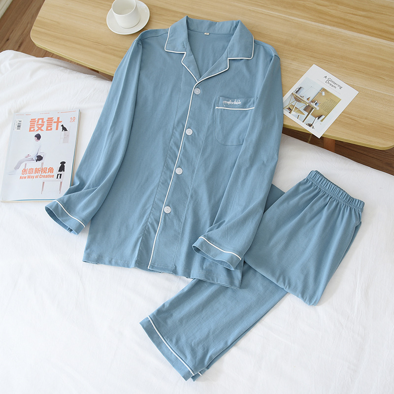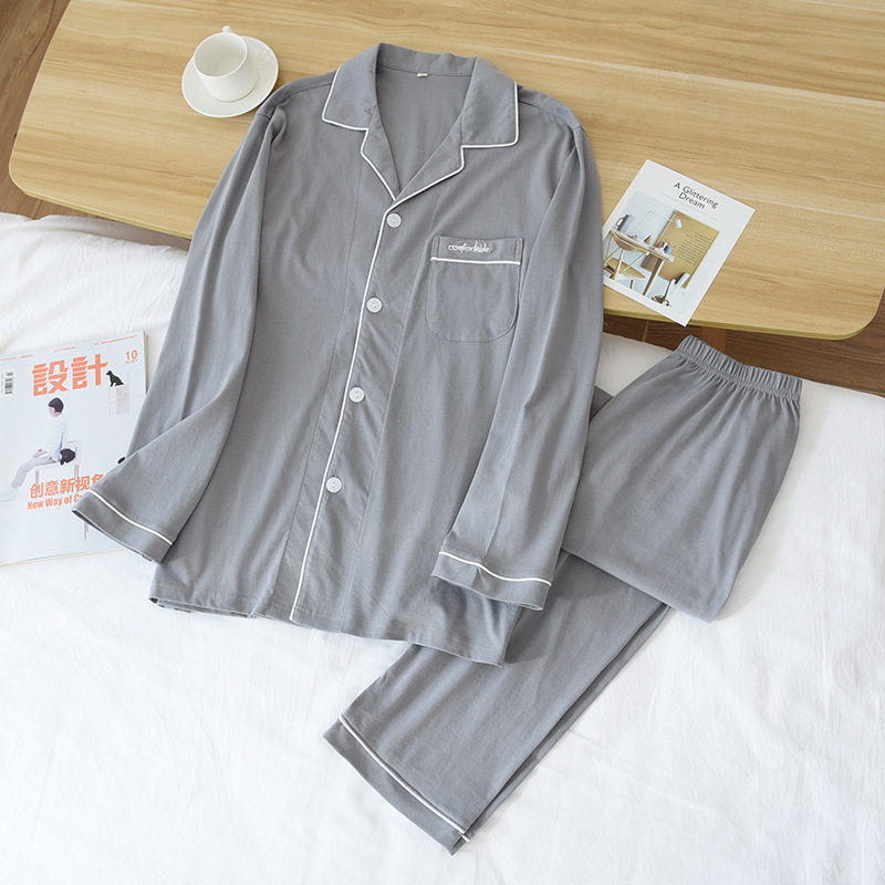 남자와 여자의 니트 면 잠옷 잠옷 멀티 컬러 플러스 사이즈 탄성 세트 간단한 커플 홈웨어 봄과 가을 얇은