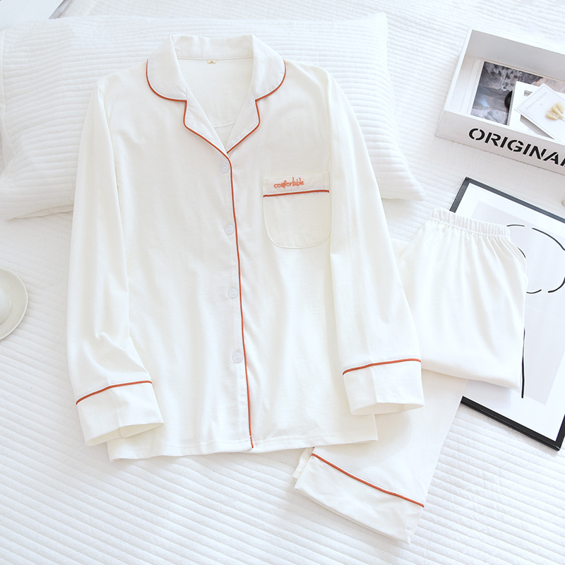남자와 여자의 니트 면 잠옷 잠옷 멀티 컬러 플러스 사이즈 탄성 세트 간단한 커플 홈웨어 봄과 가을 얇은스토어 가기