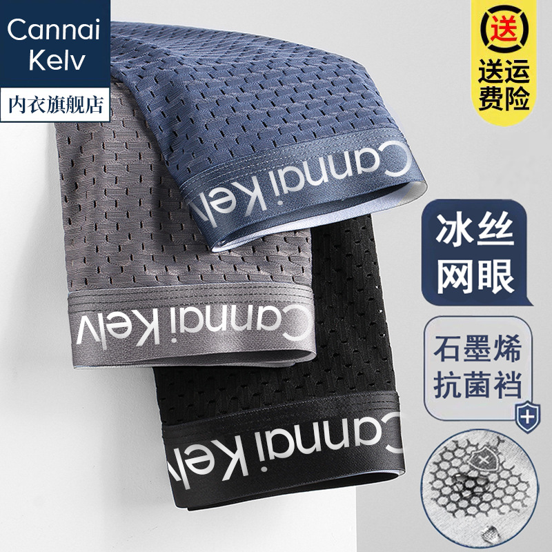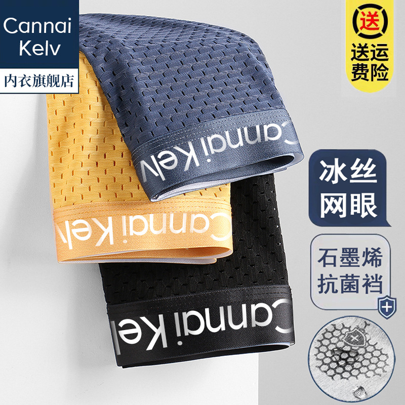 여름 얼음 실크 남성 속옷, 항균, 초박형, 흔적 없음, 통기성, 엉덩이 리프팅, 남성용 단색 복서 반바지스토어 가기