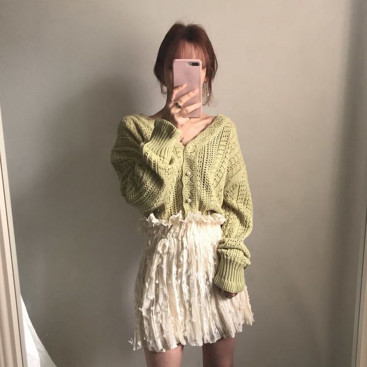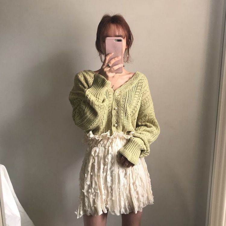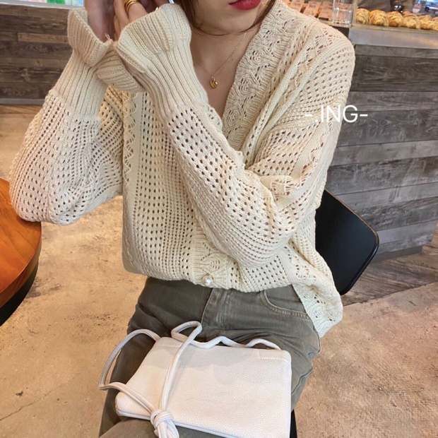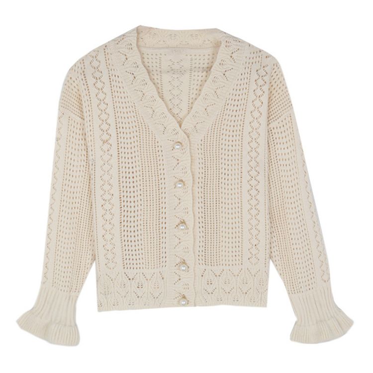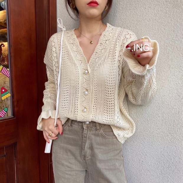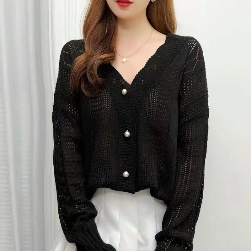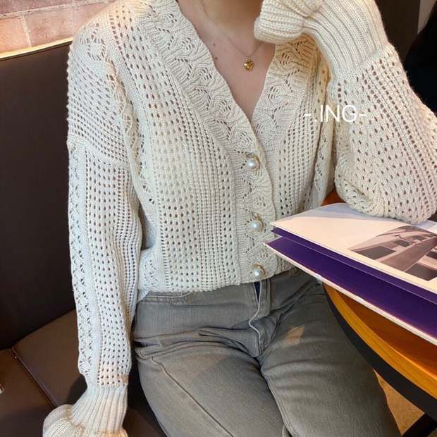 2025 크로스보더 봄 여름 새로운 스타일 게으른 스타일 크로 셰 뜨개질 중공 니트 카디건 느슨한 v 넥 한국 스타일 니트 자켓 여성용스토어 가기