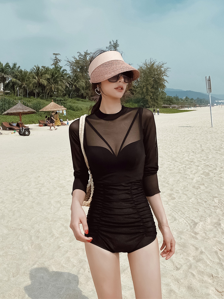 한국식 새로운 수영복 여성용 섹시 슬림 배꼽 커버 원피스 삼각형 보수적 인 작은 가슴 푸시 업 원피스 온천 수영복