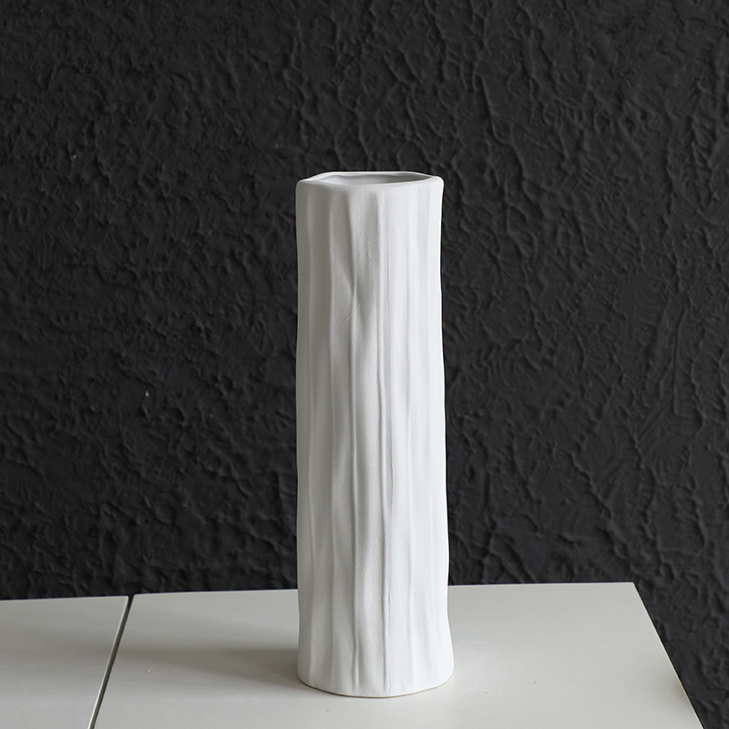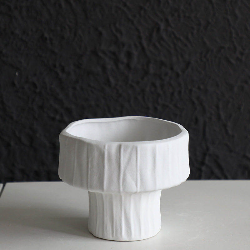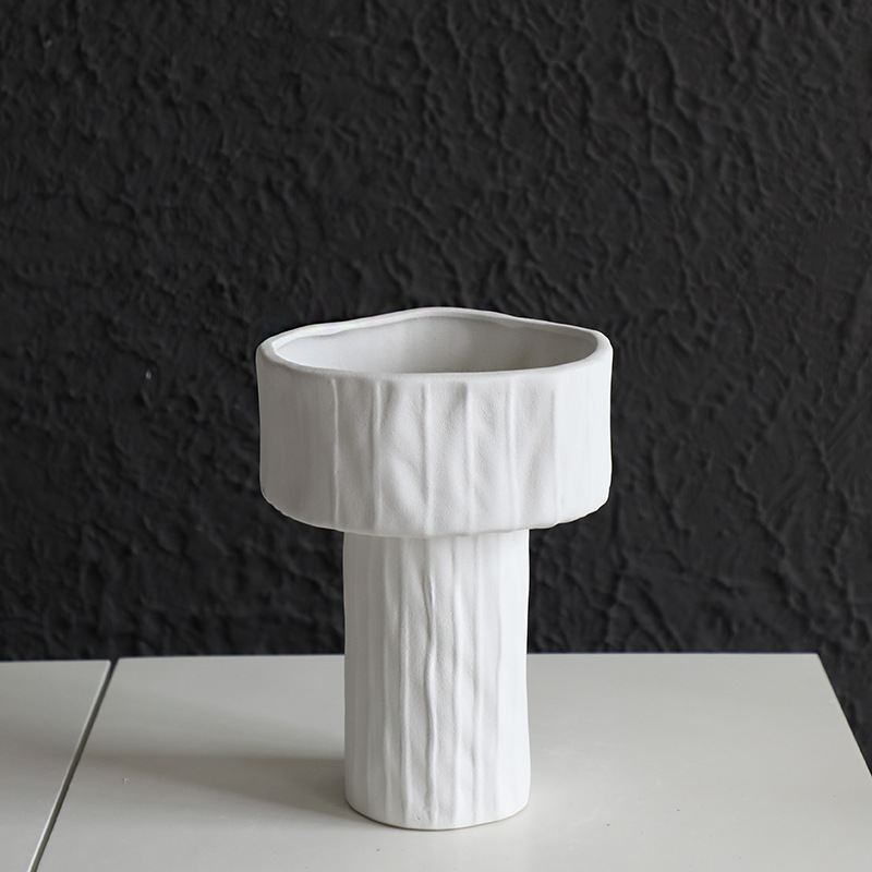 북유럽 화이트 세라믹 높은 발 화분 예술 꽃 정렬 현대 거실 홈 장식 스트레이트 꽃병 장식품