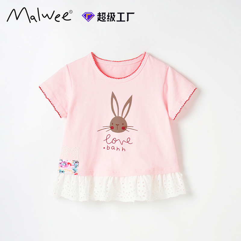 크로스보더 말위 유럽 및 미국 아동복 2026 여름 신상품 여아 반팔 티셔츠 아동 반팔 상의 ins