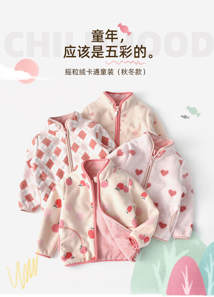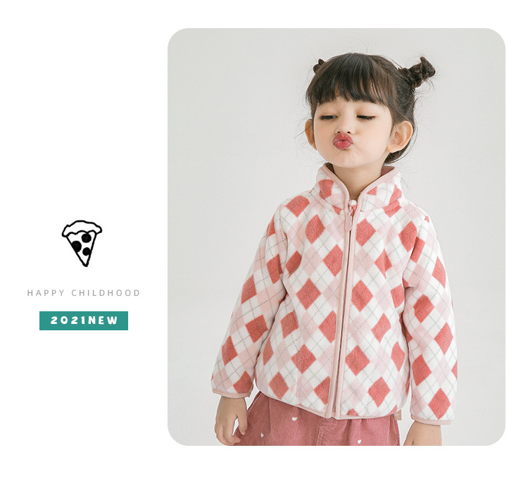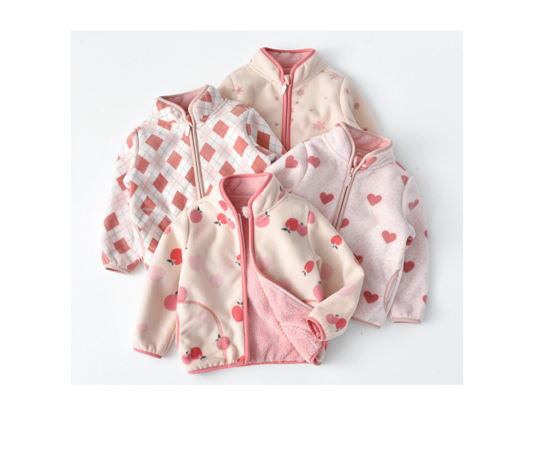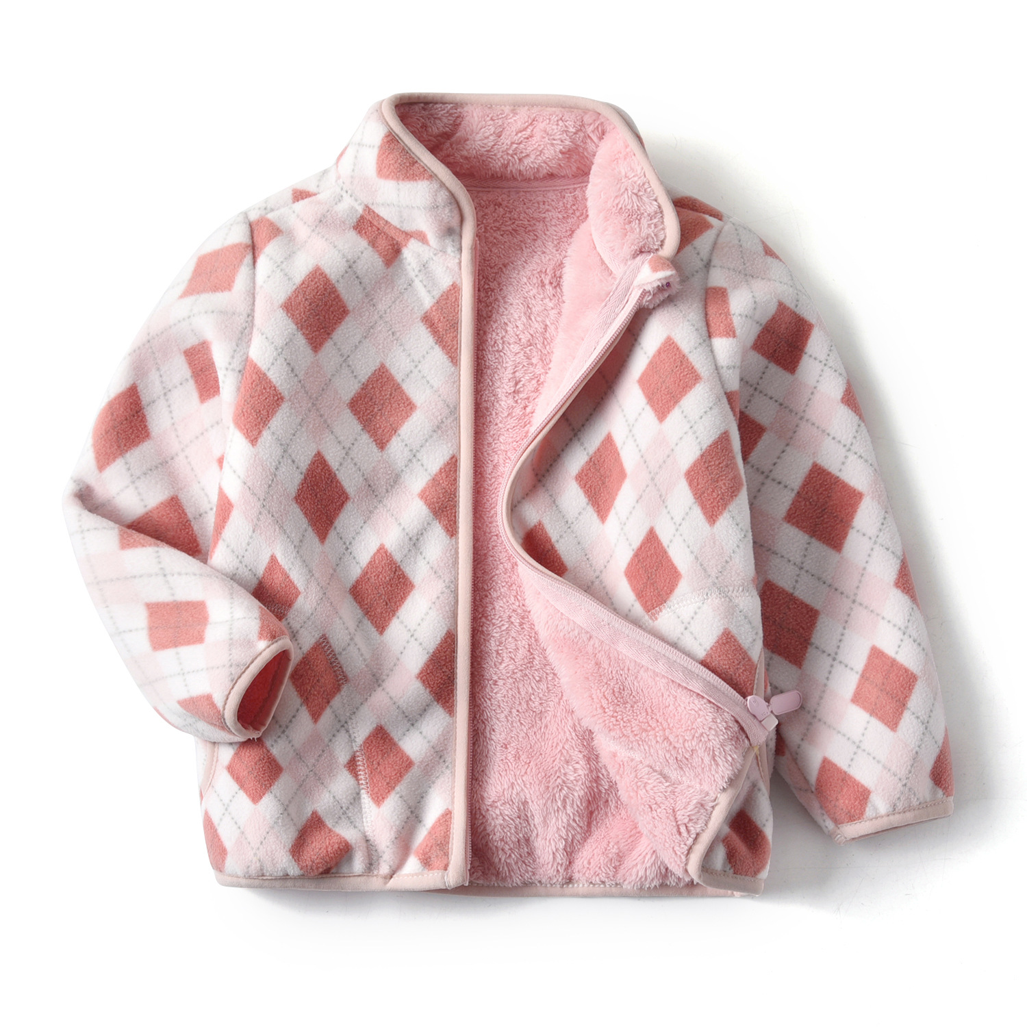【2025 신제품】독립 디자인 여아용 플리스 재킷 아동용 플리스 스탠드 칼라 핑크색스토어 가기