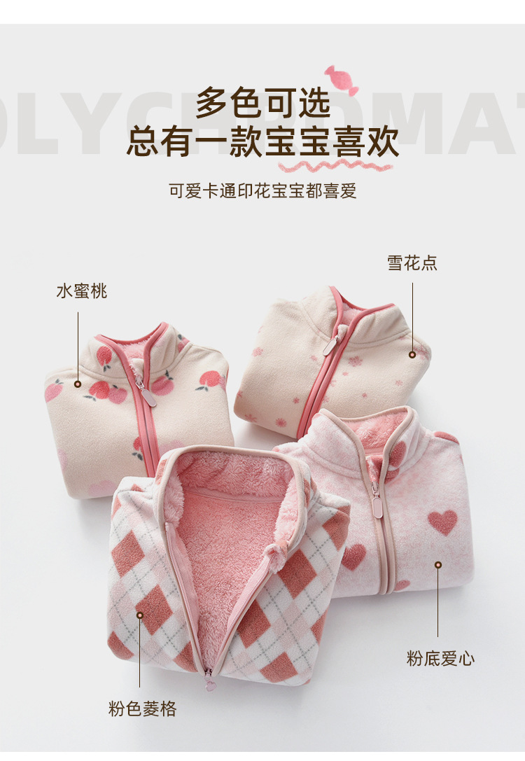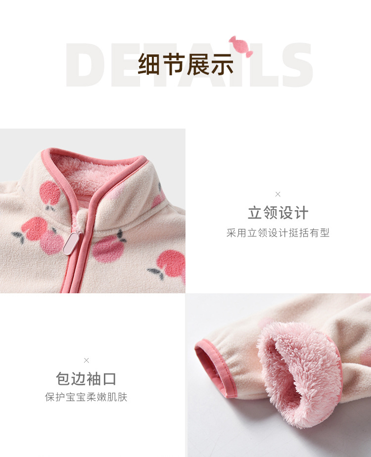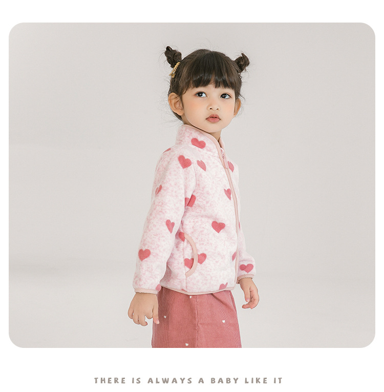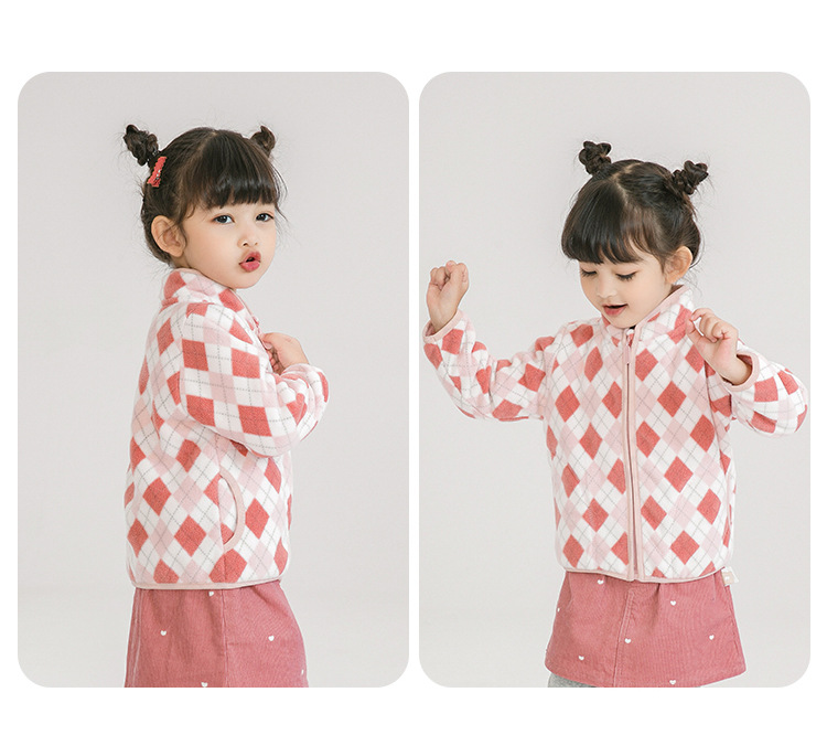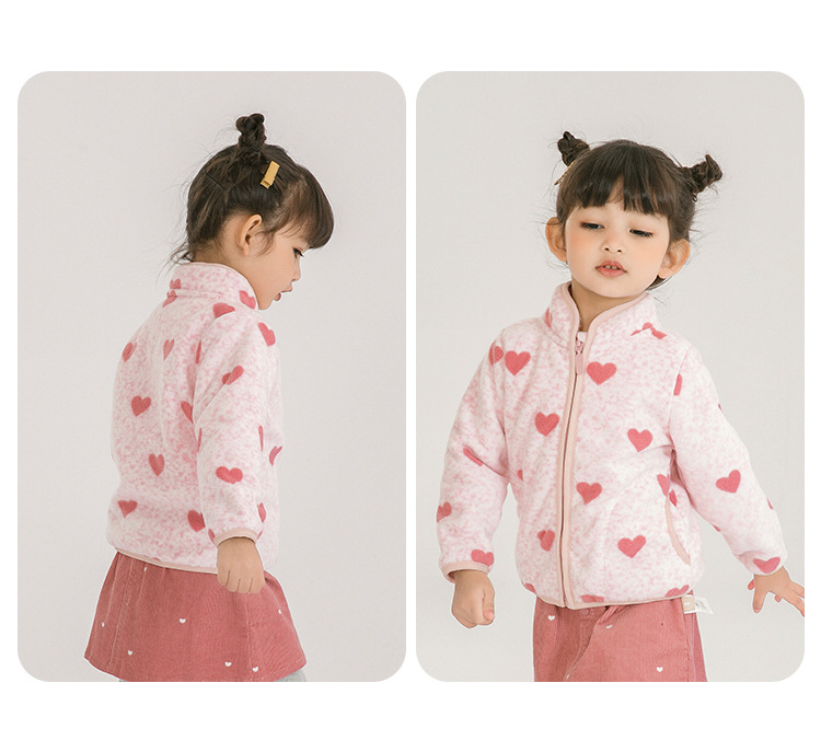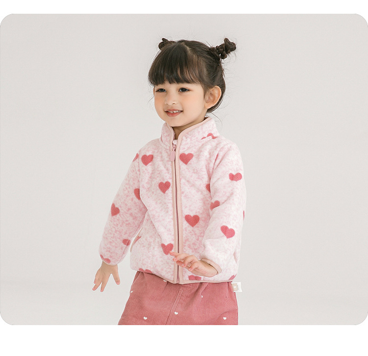 【2025 신제품】독립 디자인 여아용 플리스 재킷 아동용 플리스 스탠드 칼라 핑크색