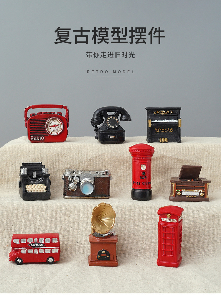 카메라 피아노 타자기 레트로 오래된 창조적 인 수지 미니 작은 장식품 홈 장식 온라인 상점 촬영 소품