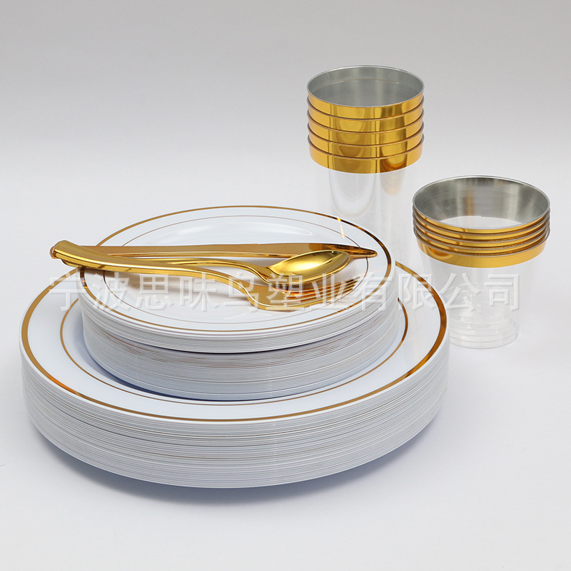 일회용 핫 스탬핑 플라스틱 솔리드 플레이트 서양 파티 두꺼운 디너 플레이트 야외 여행 일회용 식기 도매