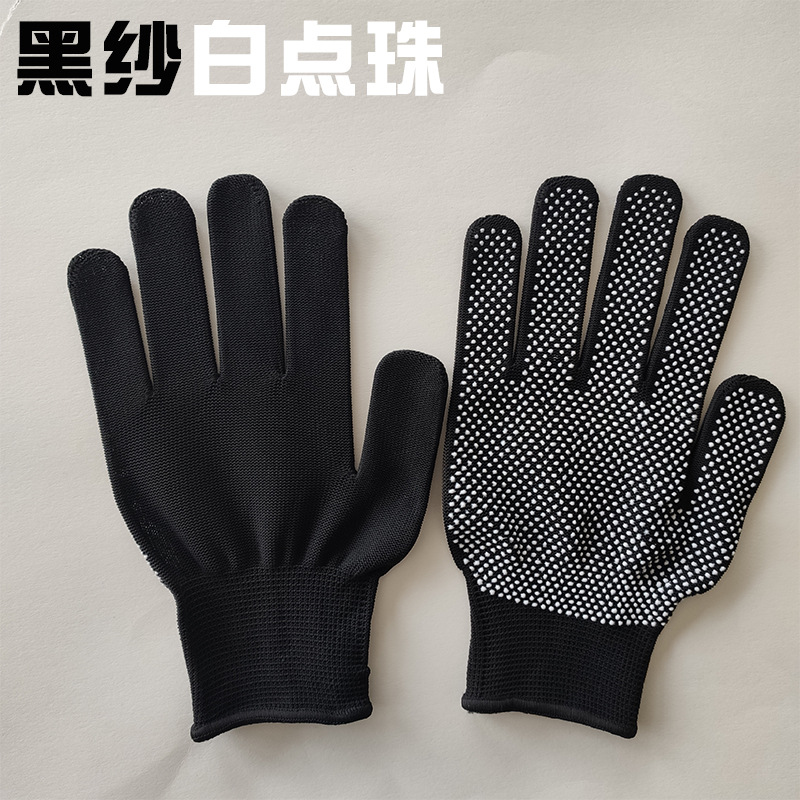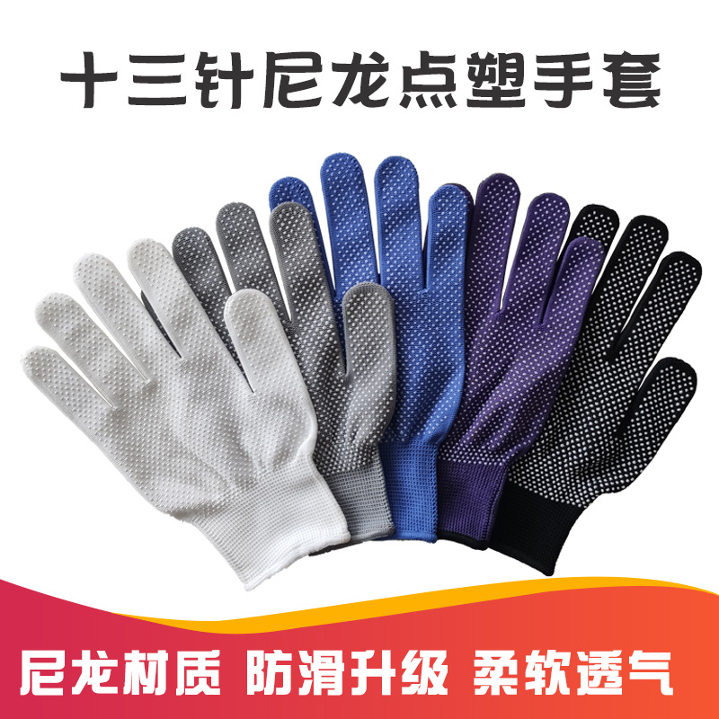 13 핀 나일론 포인트 플라스틱 장갑 통기성 미끄럼 방지 얇은 흰색과 검은 색 회색 포인트 구슬 공장 가공 노동 보호 노출 손가락