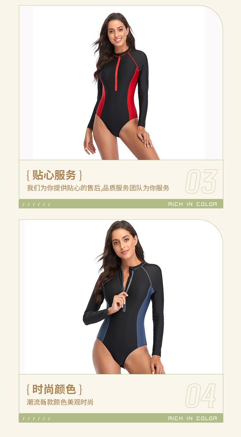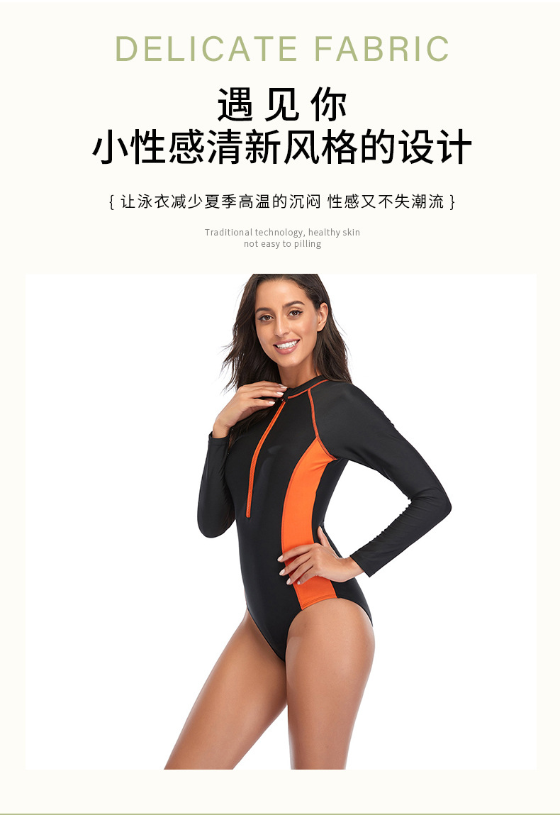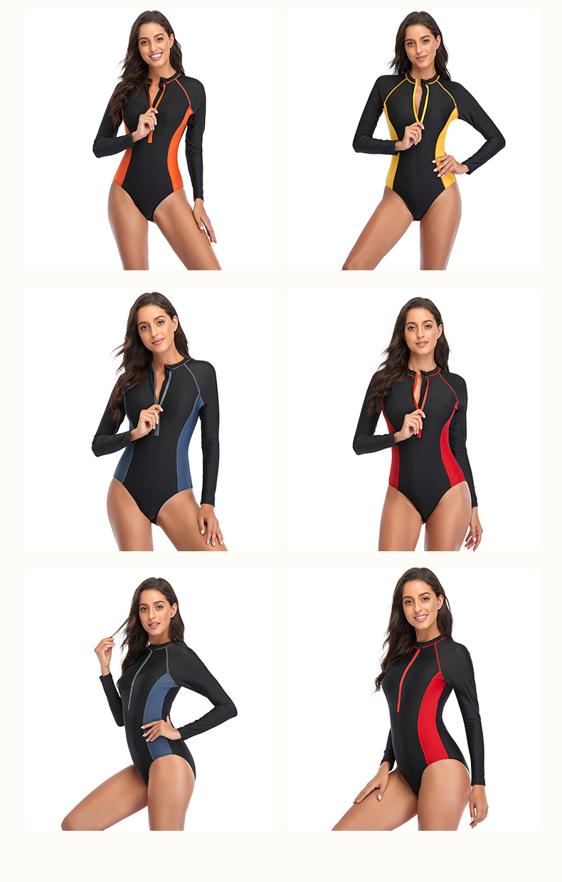 2024 신상 서핑 긴팔 원피스 수영복 여성 섹시 배 가리기 스포츠 유럽풍 스플라이싱 지퍼 삼각 수영복스토어 가기