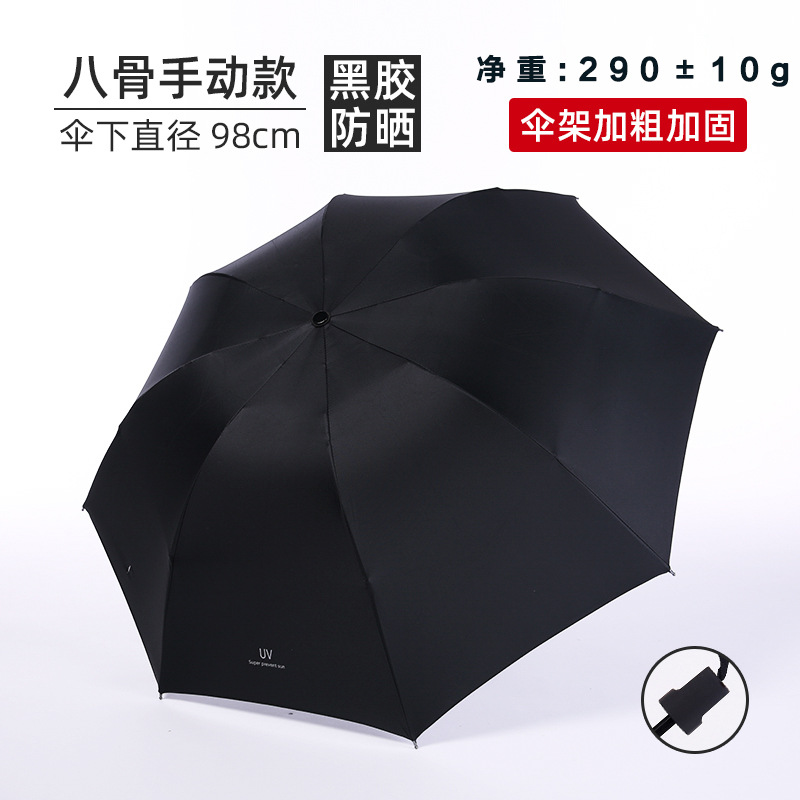 此款全部手动雨伞都是有码伞架,加粗伞杆,磨砂黑色伞柄,雨伞净重在305g左右