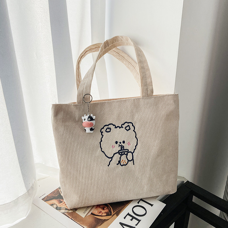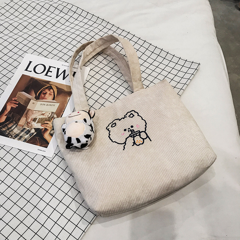 가을과 겨울 새로운 코듀로이 가방 2020 새로운 유행 한국 소녀 패션 귀여운 대학생 수업 핸드백스토어 가기