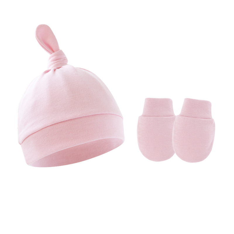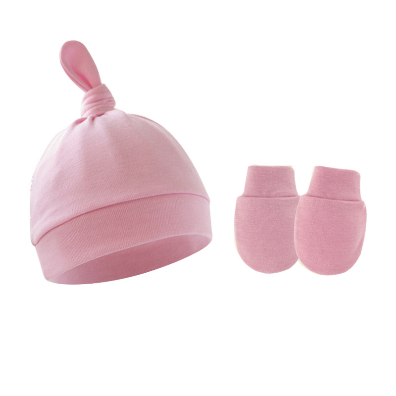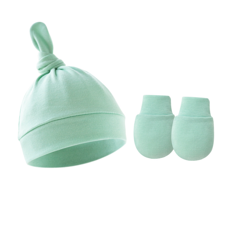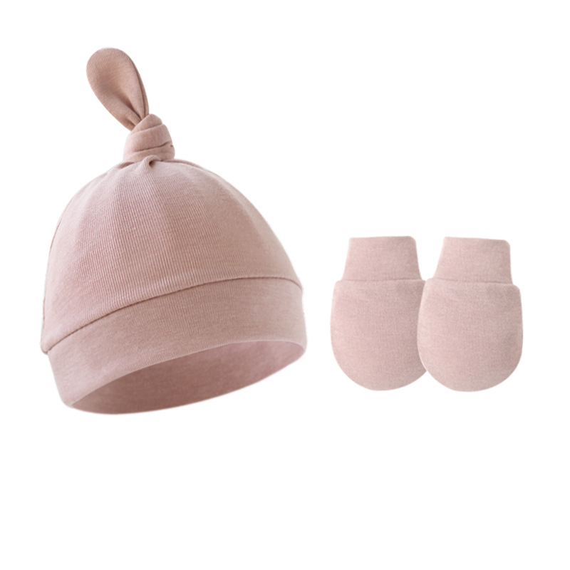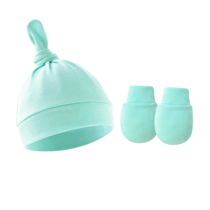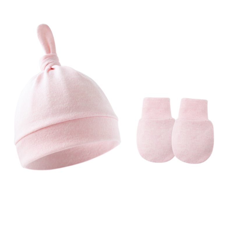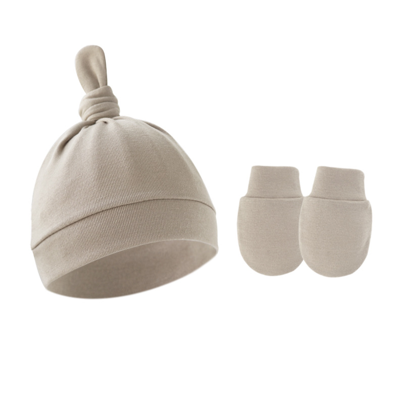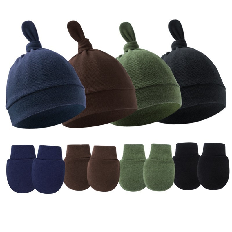대외 무역 봄과 가을 얇은 아기 태아 모자 신생아 모자 아기 매듭 주 모자 싱글 레이어 모자 장갑 세트