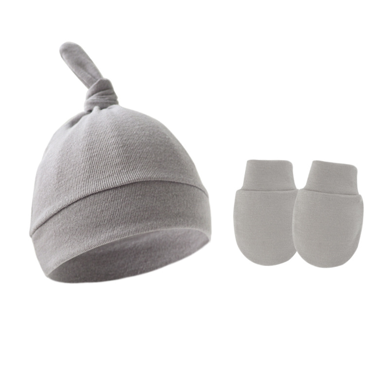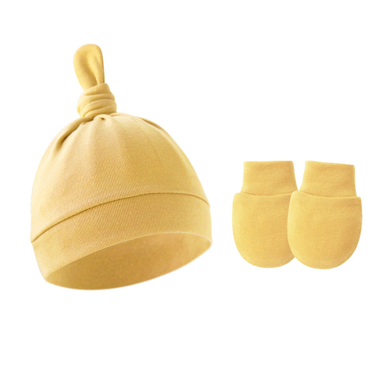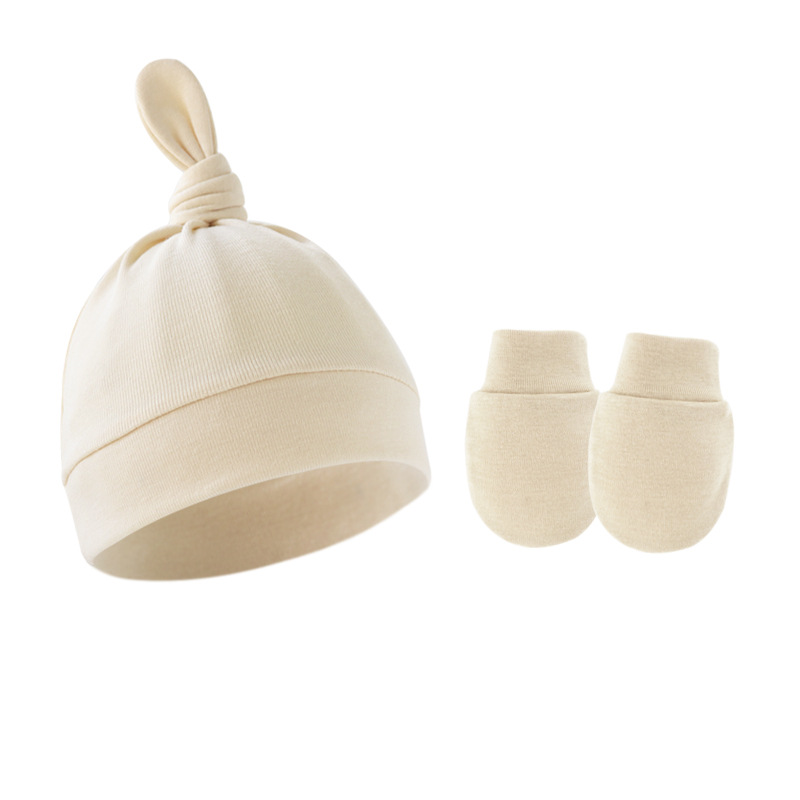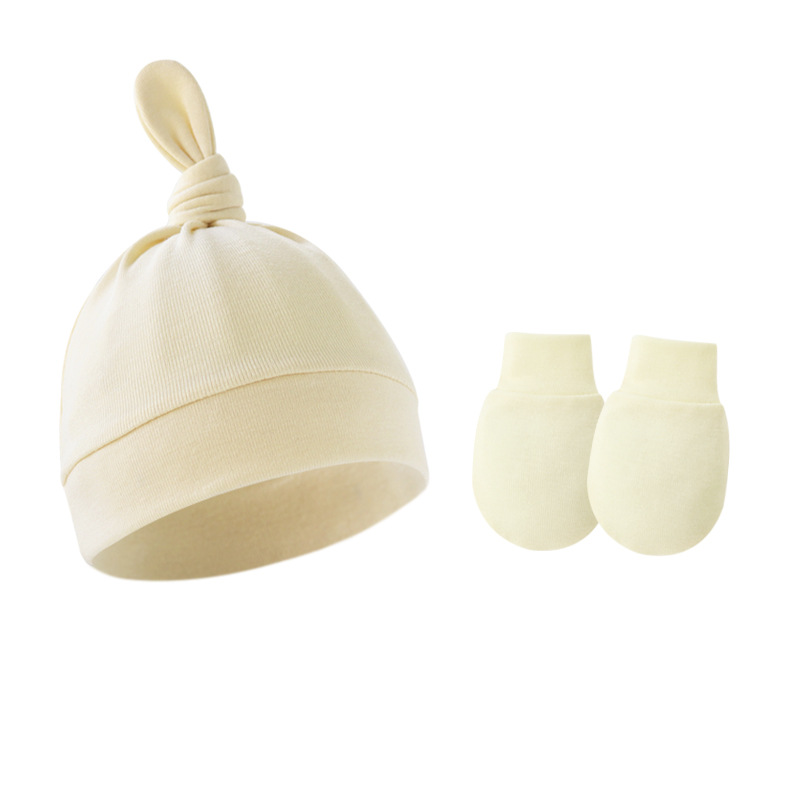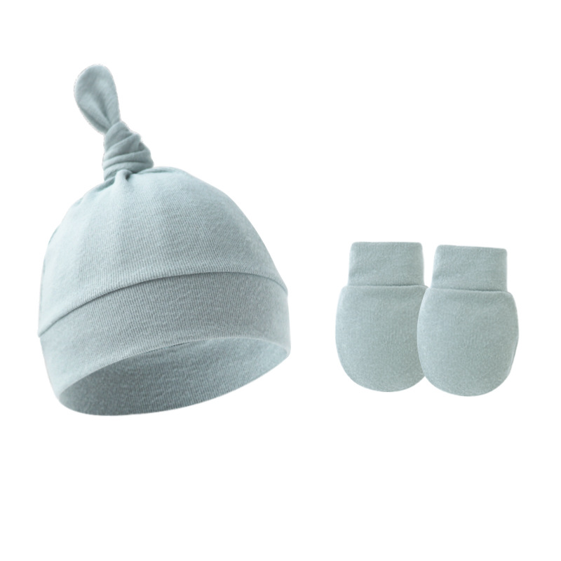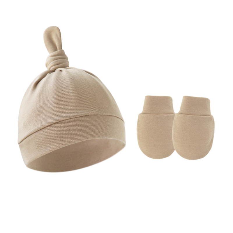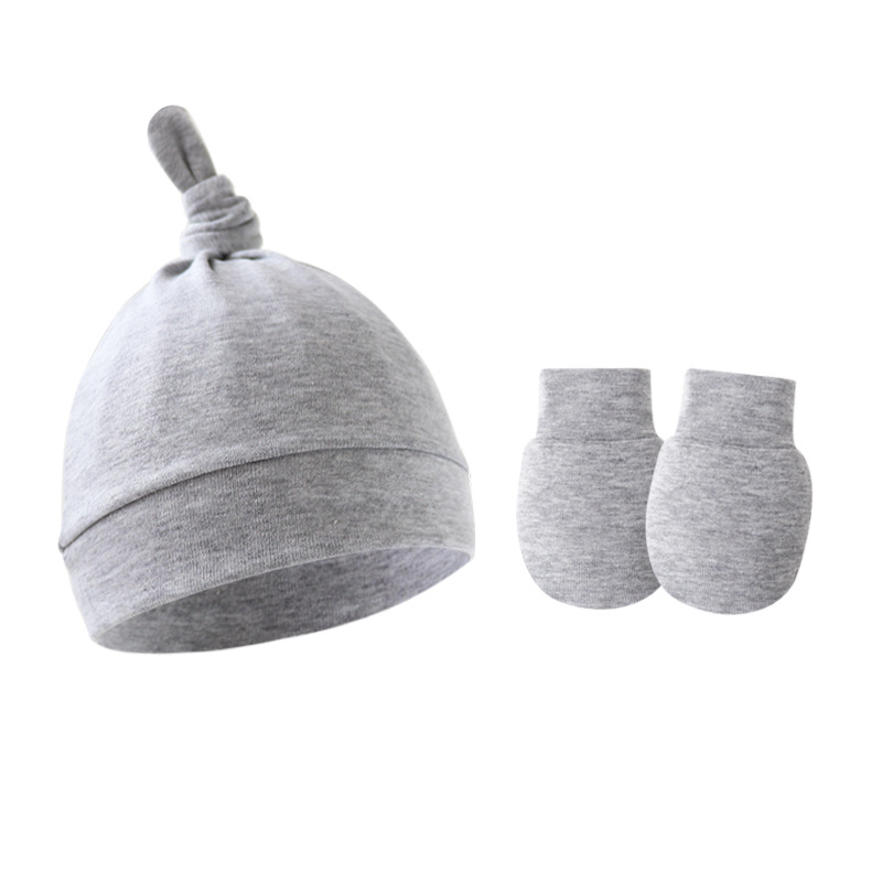 대외 무역 봄과 가을 얇은 아기 태아 모자 신생아 모자 아기 매듭 주 모자 싱글 레이어 모자 장갑 세트