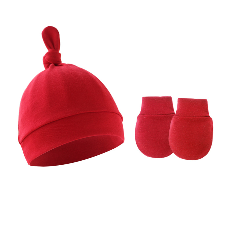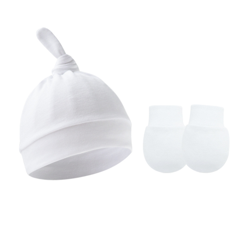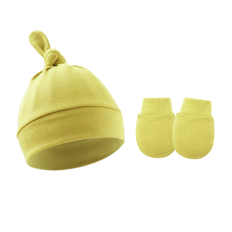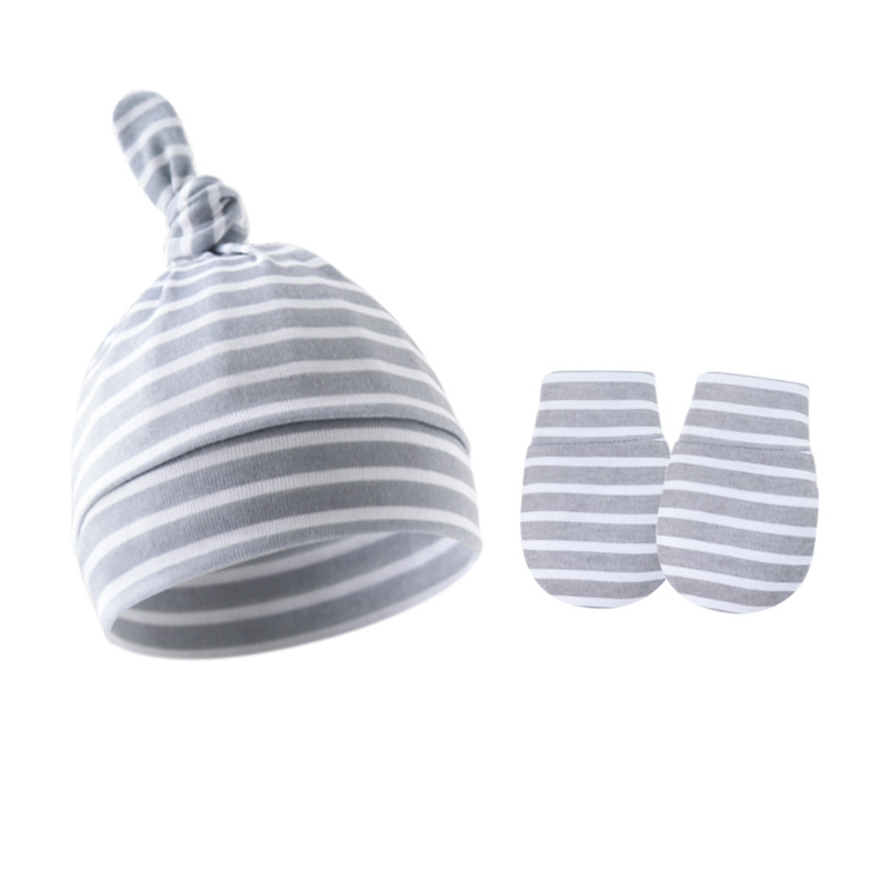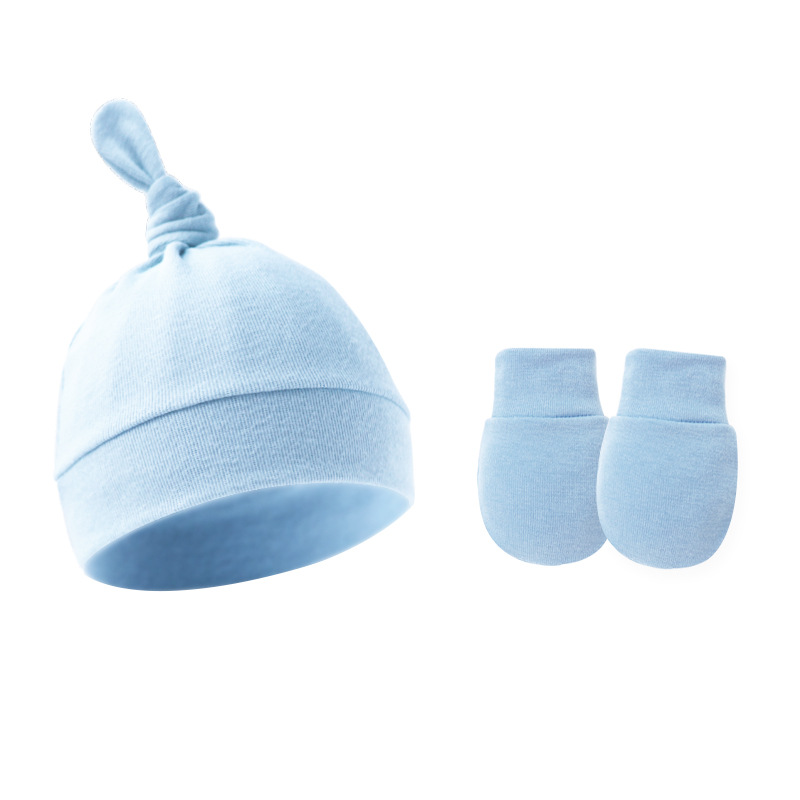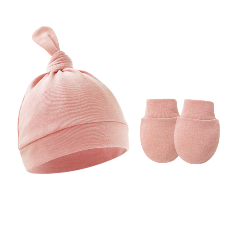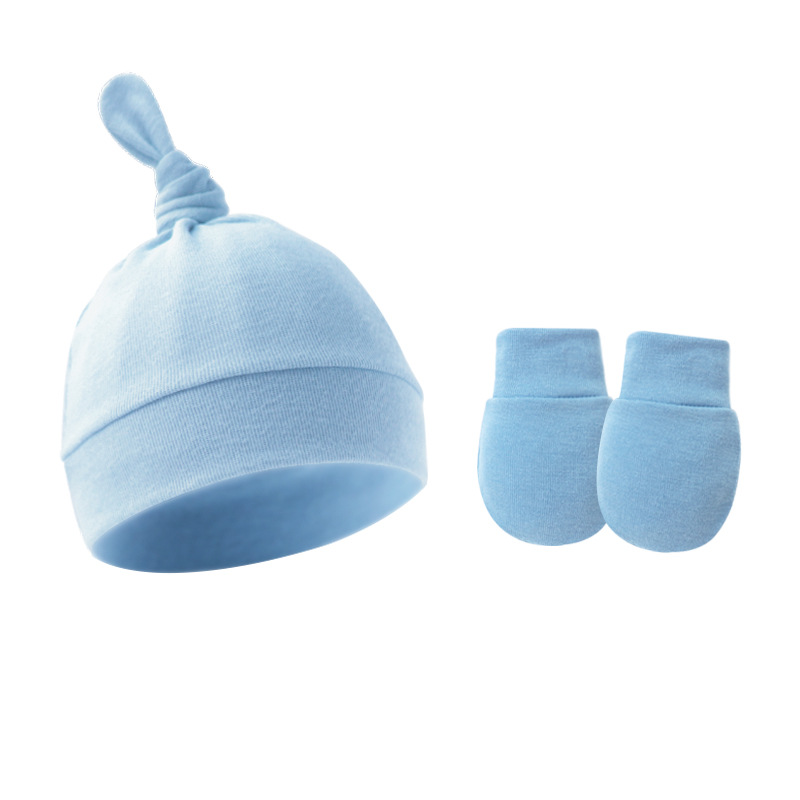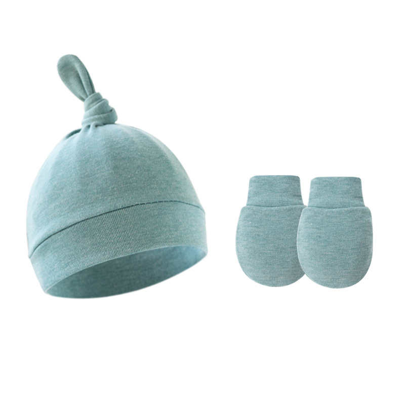 대외 무역 봄과 가을 얇은 아기 태아 모자 신생아 모자 아기 매듭 주 모자 싱글 레이어 모자 장갑 세트