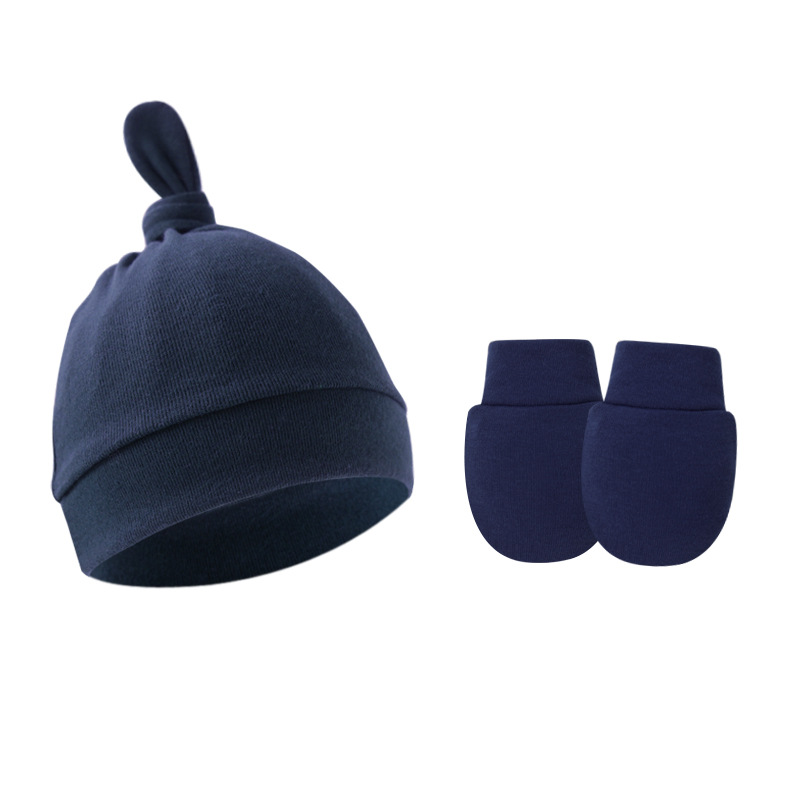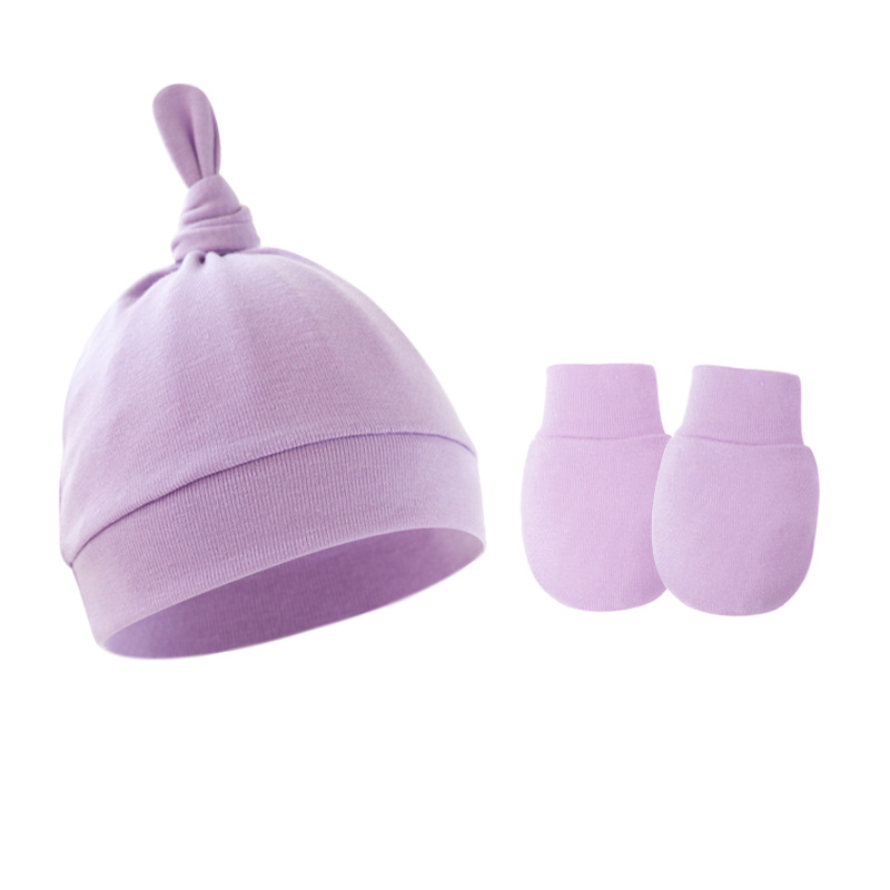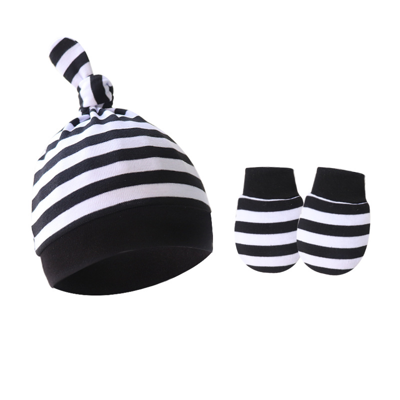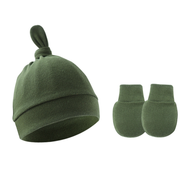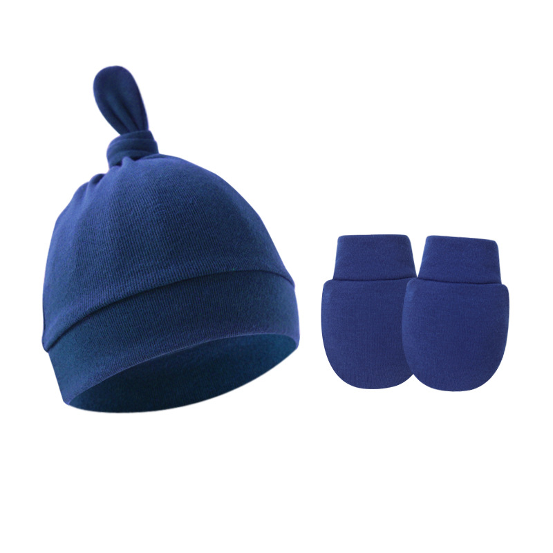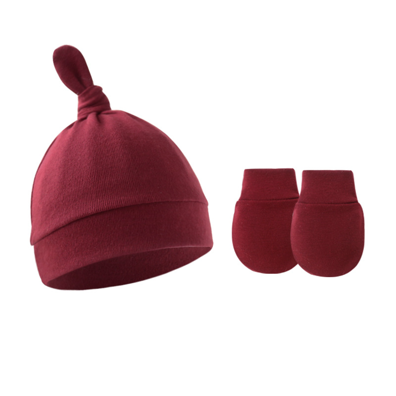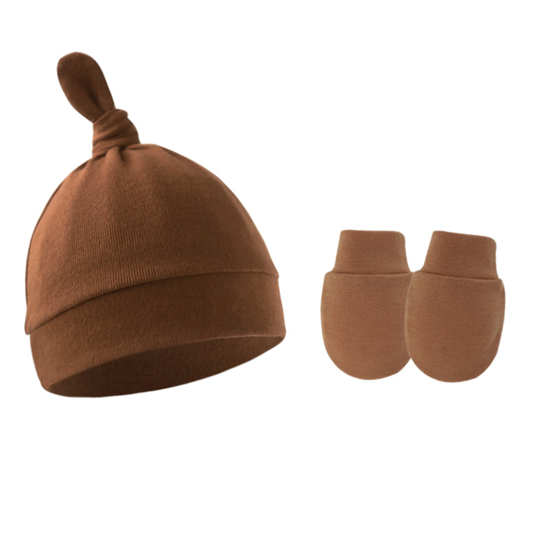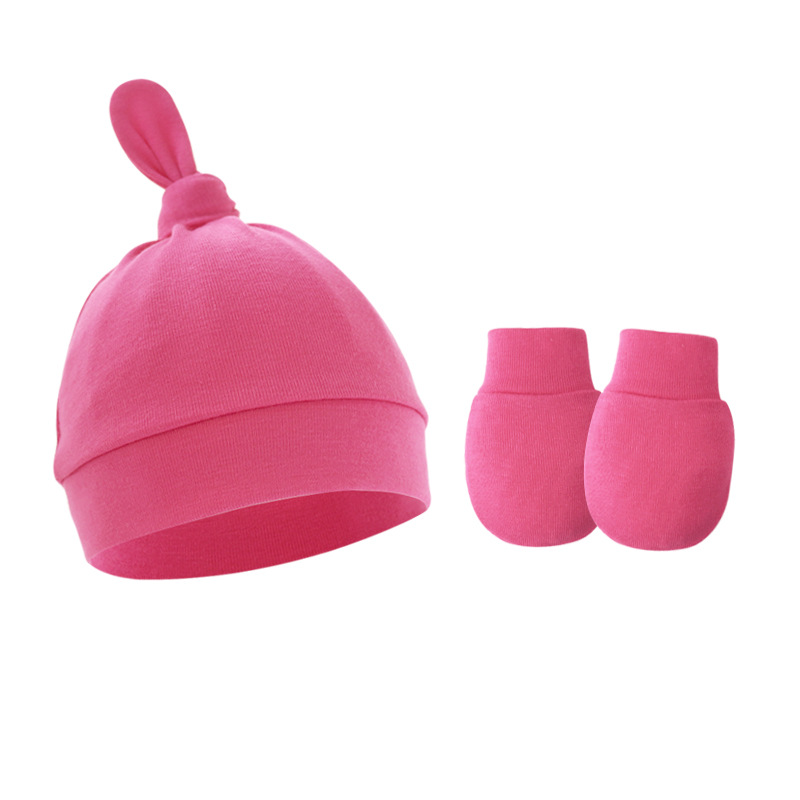 대외 무역 봄과 가을 얇은 아기 태아 모자 신생아 모자 아기 매듭 주 모자 싱글 레이어 모자 장갑 세트